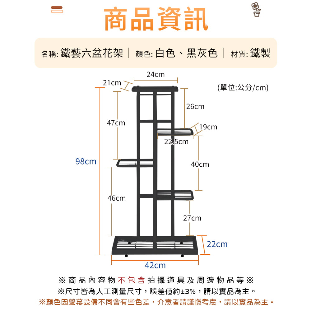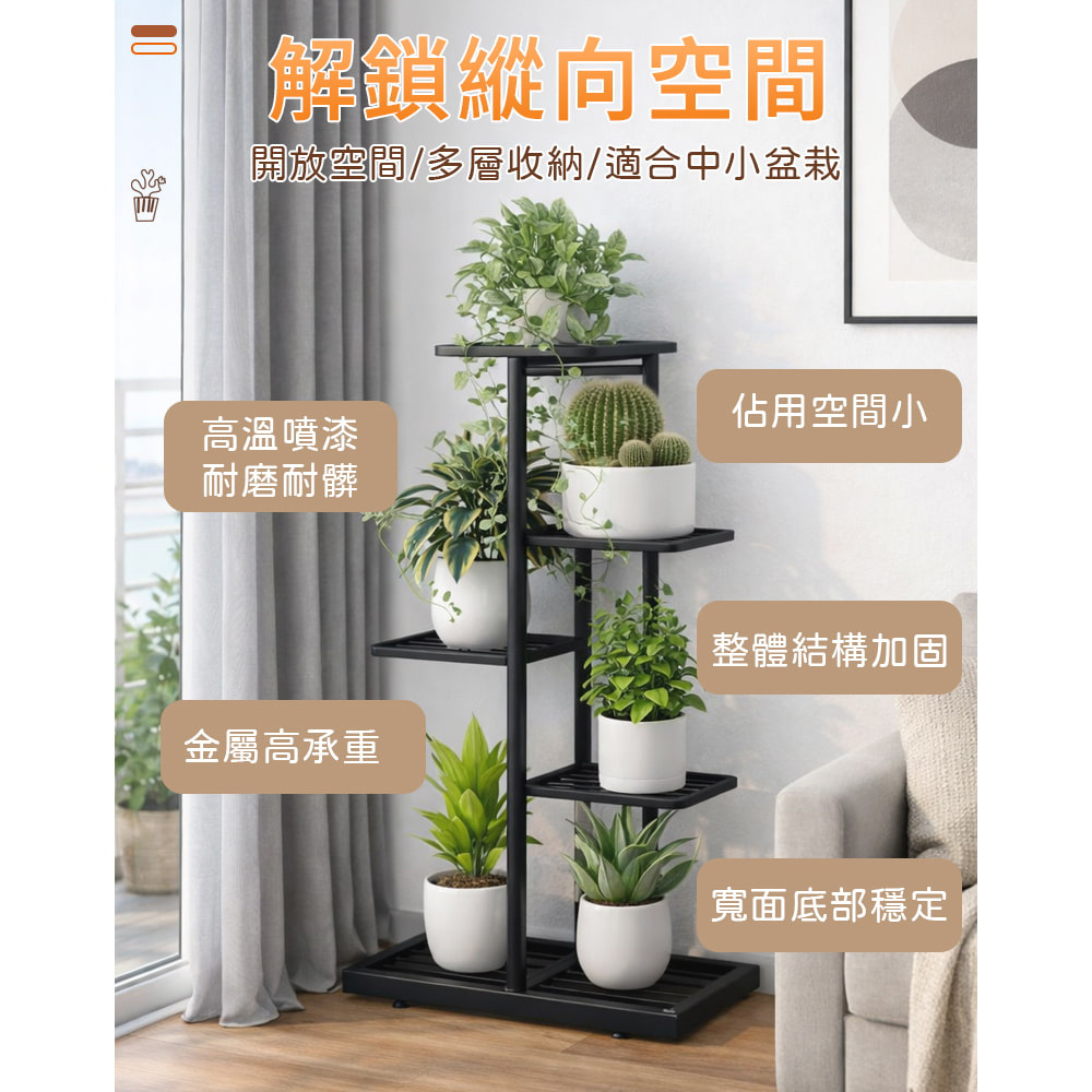 【AOTTO】簡約直立式花架盆栽收納架-黑色(FT-053BK)