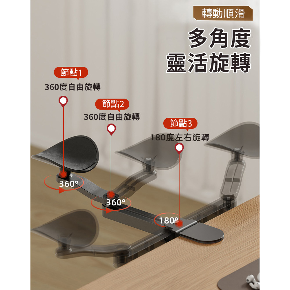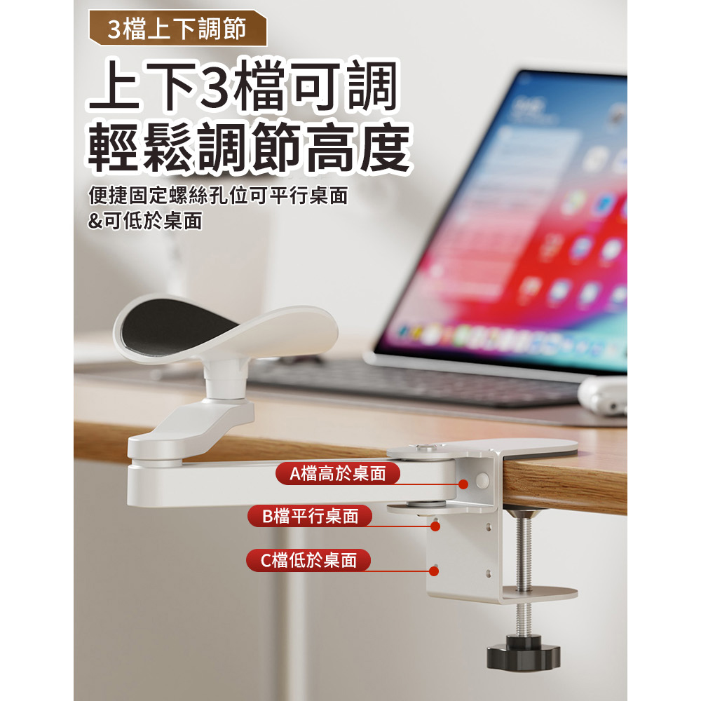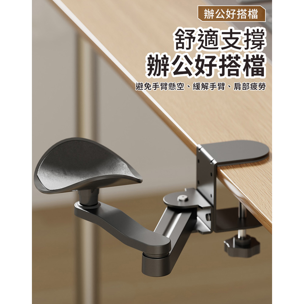 舒適辦公 舒緩肩部疲勞 人體工學 多種角度 無需打孔 簡易安裝 鋁合金材質 堅固耐用尺寸:如圖