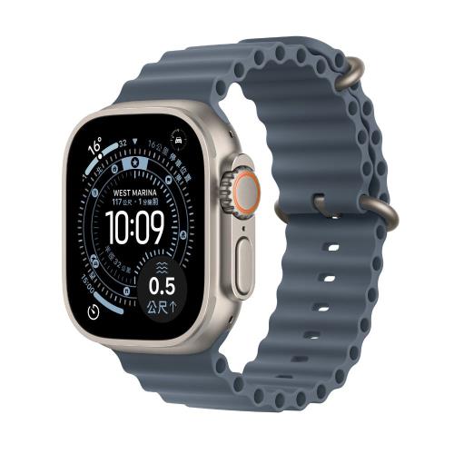 Apple Watch Ultra 3 LTE 49mm 原色鈦金屬錶殼錨藍色海洋錶帶 M/L (2025) _ 台灣公司貨 + 專用 (錶貼 & 錶套)