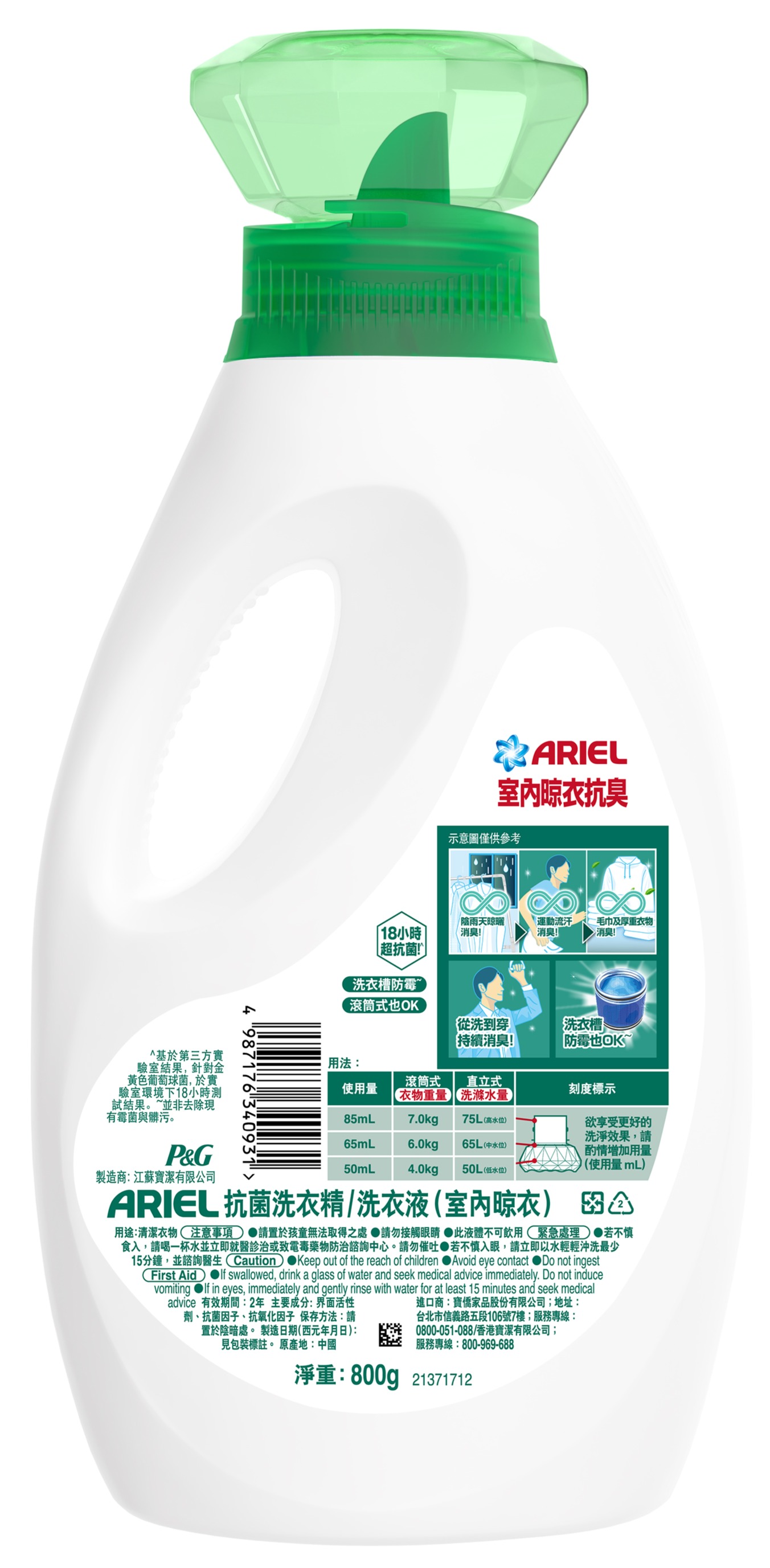 ARIEL超濃縮抗菌洗衣精800G瓶裝室內晾衣型