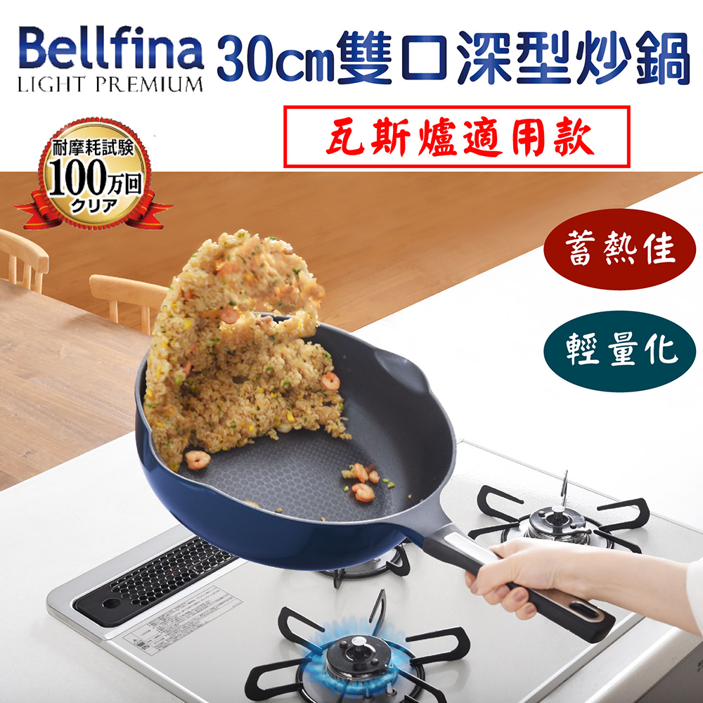日本Arnest Bellfina鑽石超輕量雙口深型不沾炒鍋30cm(兩款任選)