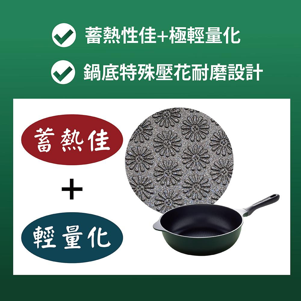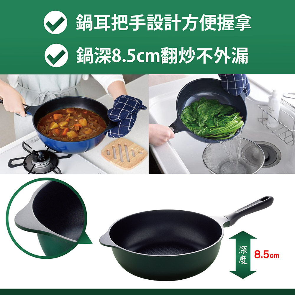 日本Arnest Bellfina鑽石深型平底IH不沾炒鍋28cm-森林綠(瓦斯爐、電磁爐均可用