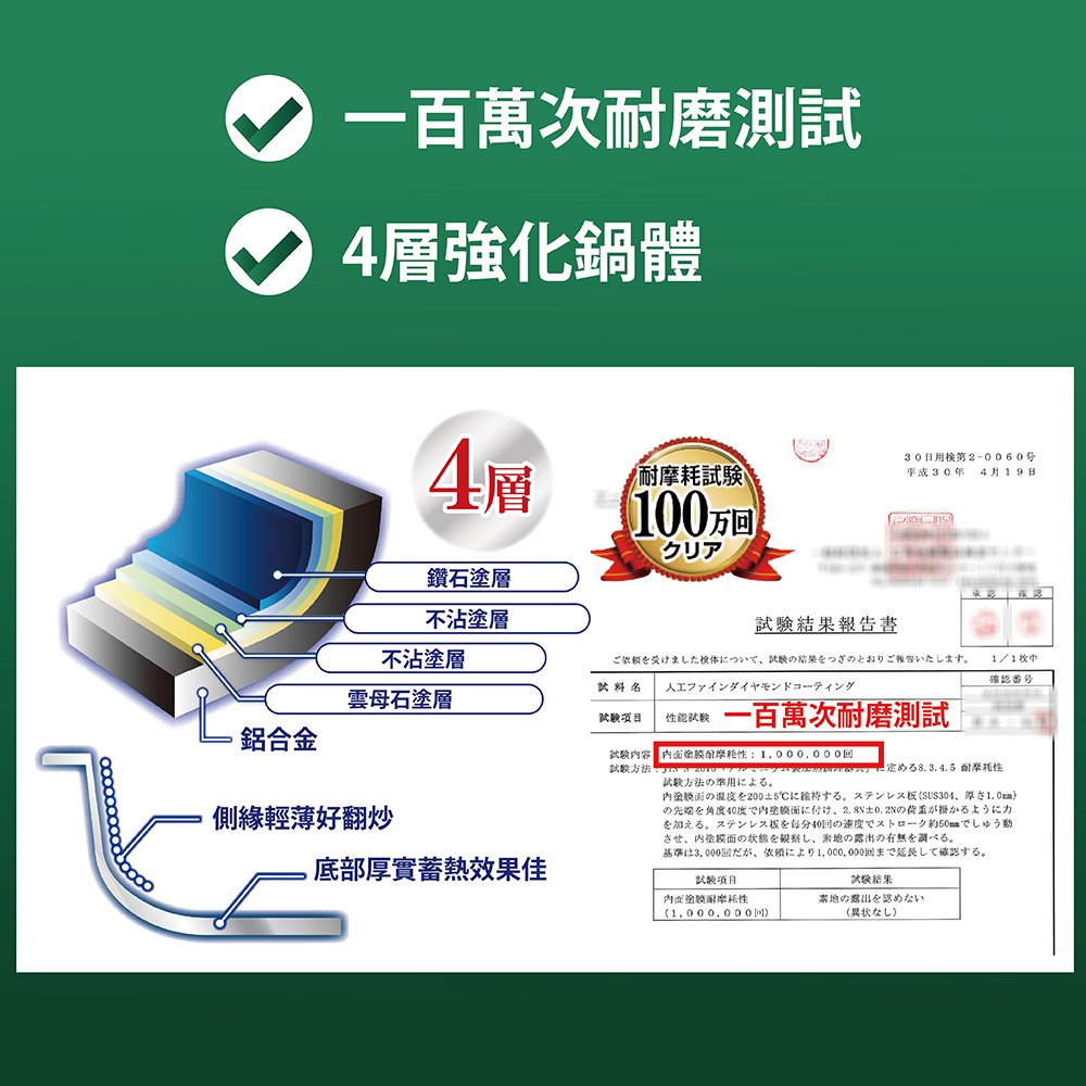 鍋身-鋁合金、氟素脂不沾塗層(不含PFOA檢測通過)