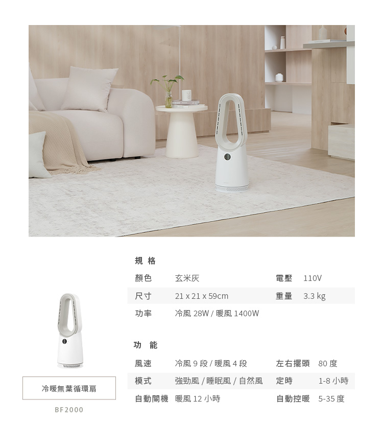 [丞洋企業] ARTISAN冷暖DC無葉循環扇BF2000