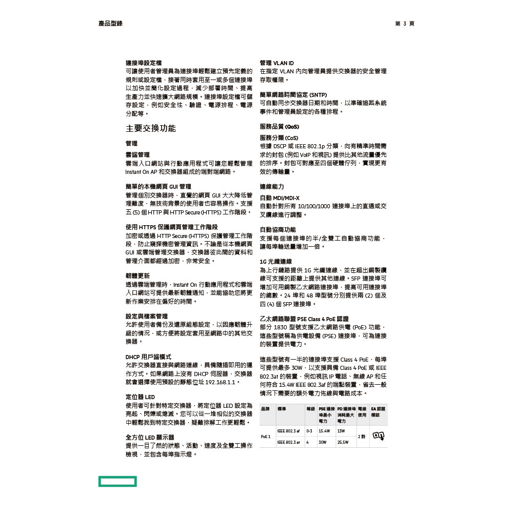 • 智慧託管的 Layer 2 乙太網路交換器系列,可立即部署 8、24 與 48 埠的非 PoE 與 Class 4 PoE 型號