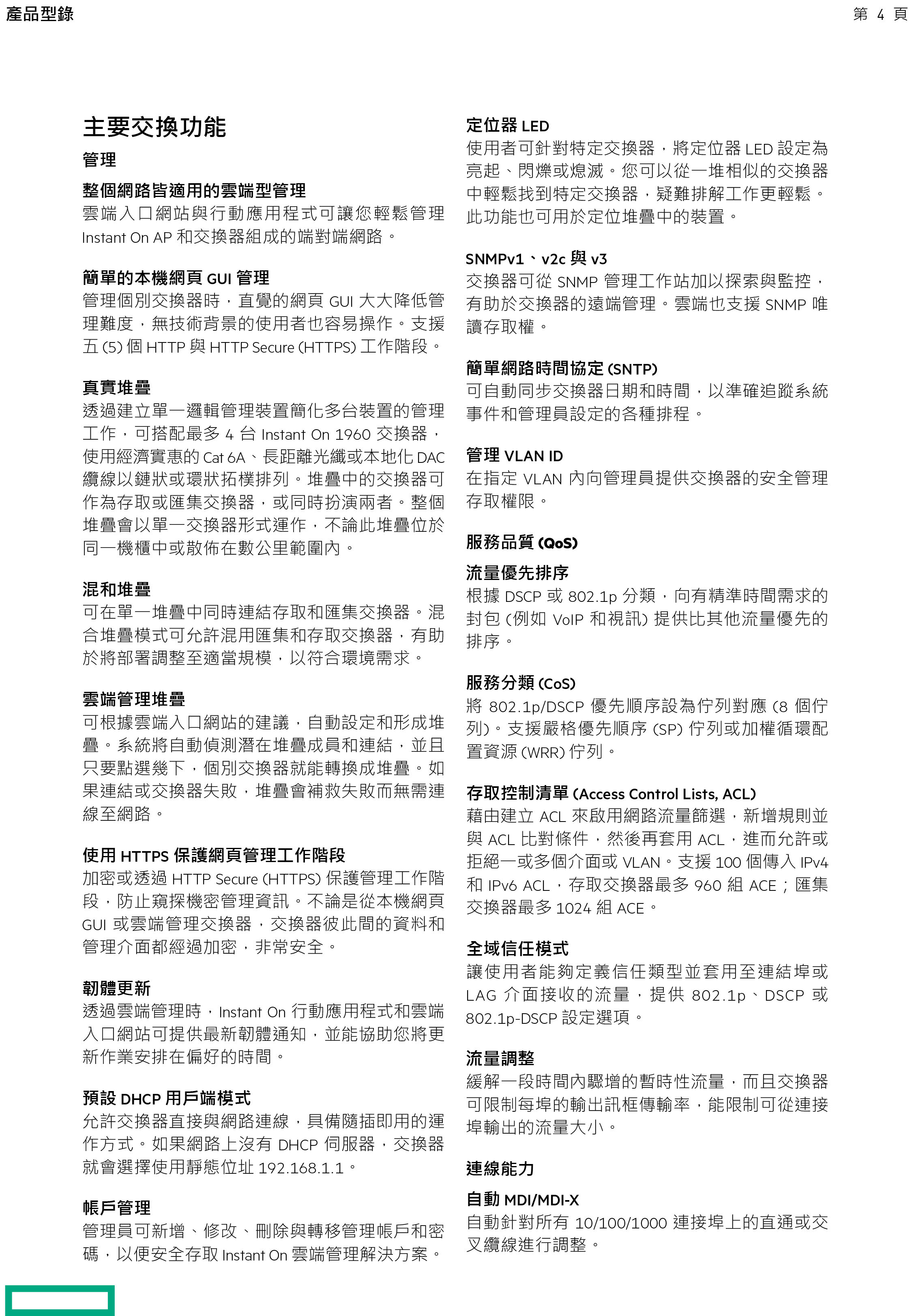 管理功能:Aruba Instant On Cloud、網頁瀏覽器、SNMP 管理程式