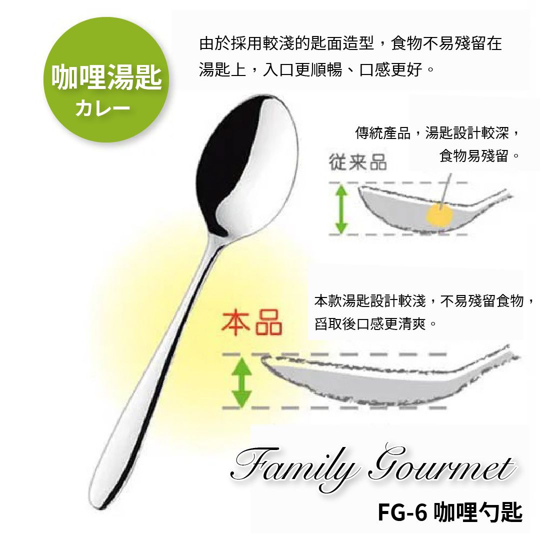 日本 ASAHI|日本製|18-10 不鏽鋼圓湯匙|Family Gourmet|FG-1