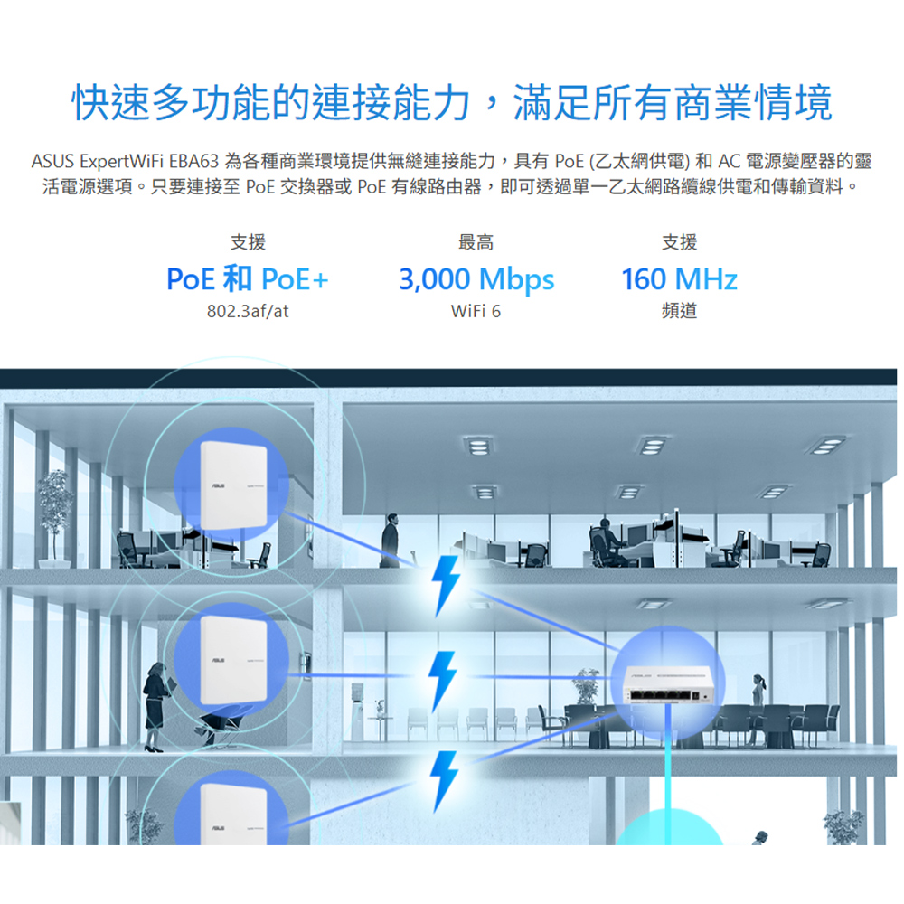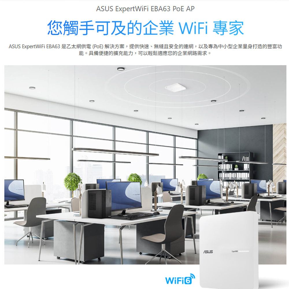 昌運監視器 ASUS華碩 ExpertWiFi EBA63 AX3000 雙頻 WiFi 6 PoE AP 路由器 分享器