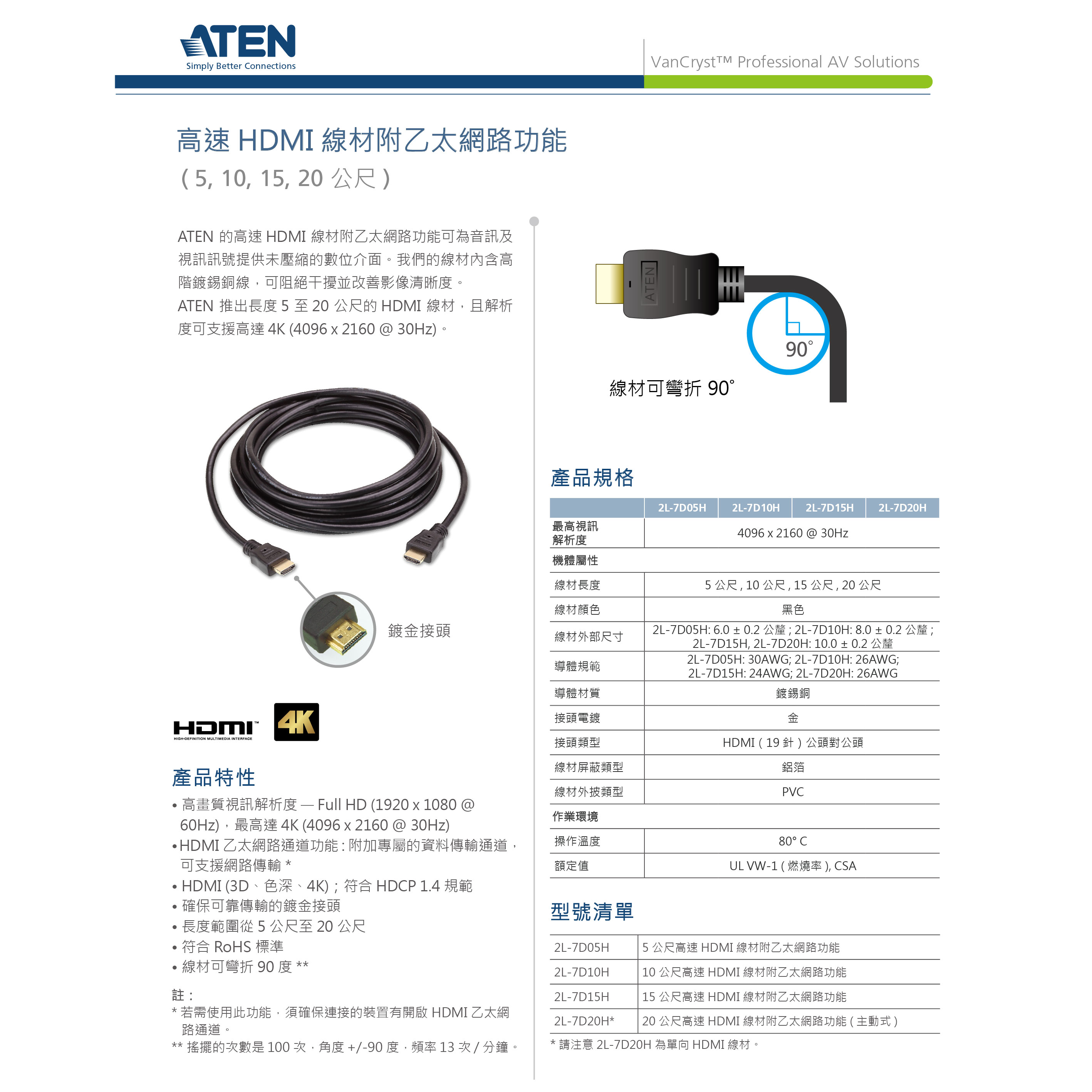 昌運監視器 ATEN 宏正 2L-7D10H 10公尺 高速 HDMI™ 線材附乙太網路功能