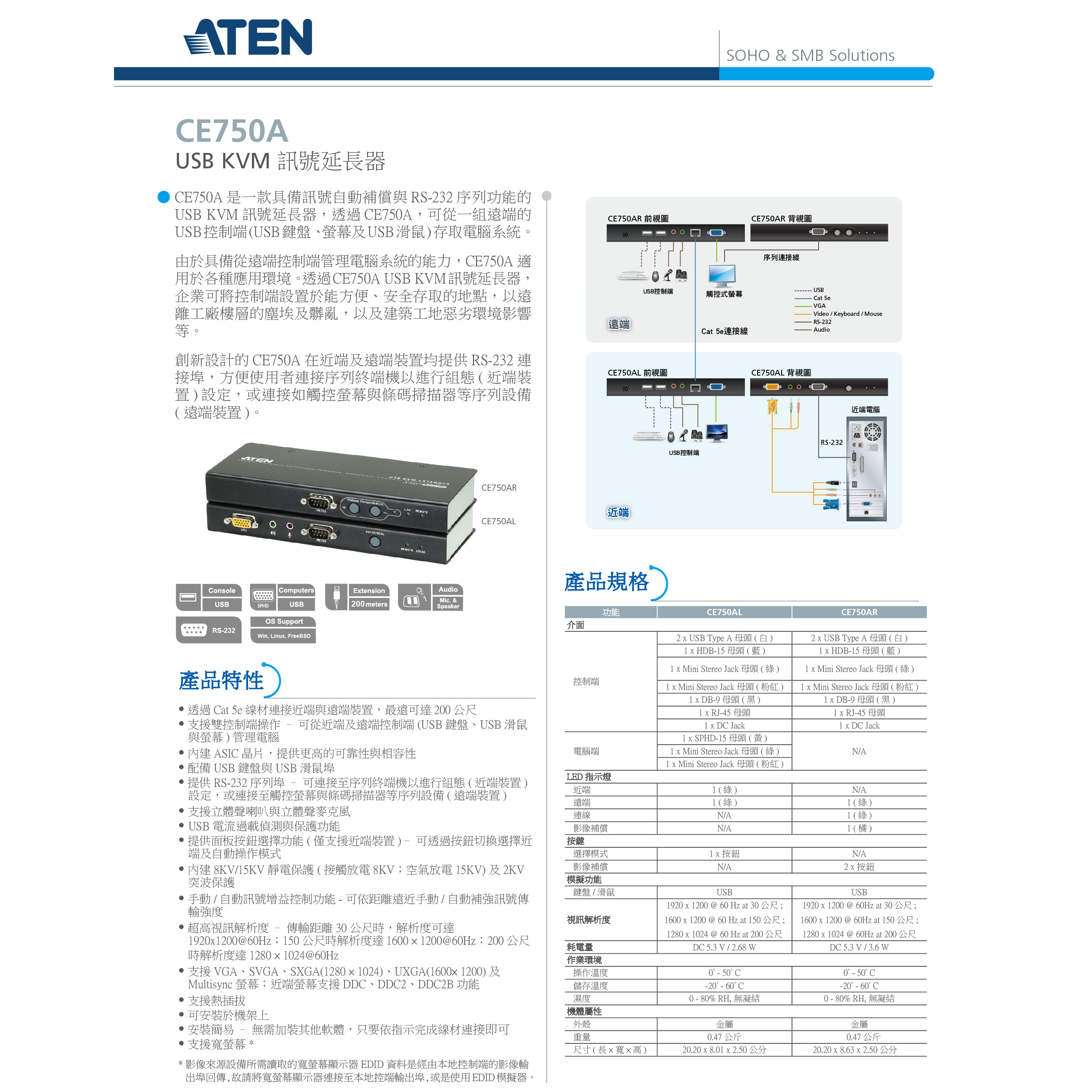 昌運監視器 ATEN 宏正 CE750A USB VGA/Audio Cat 5 KVM延長器