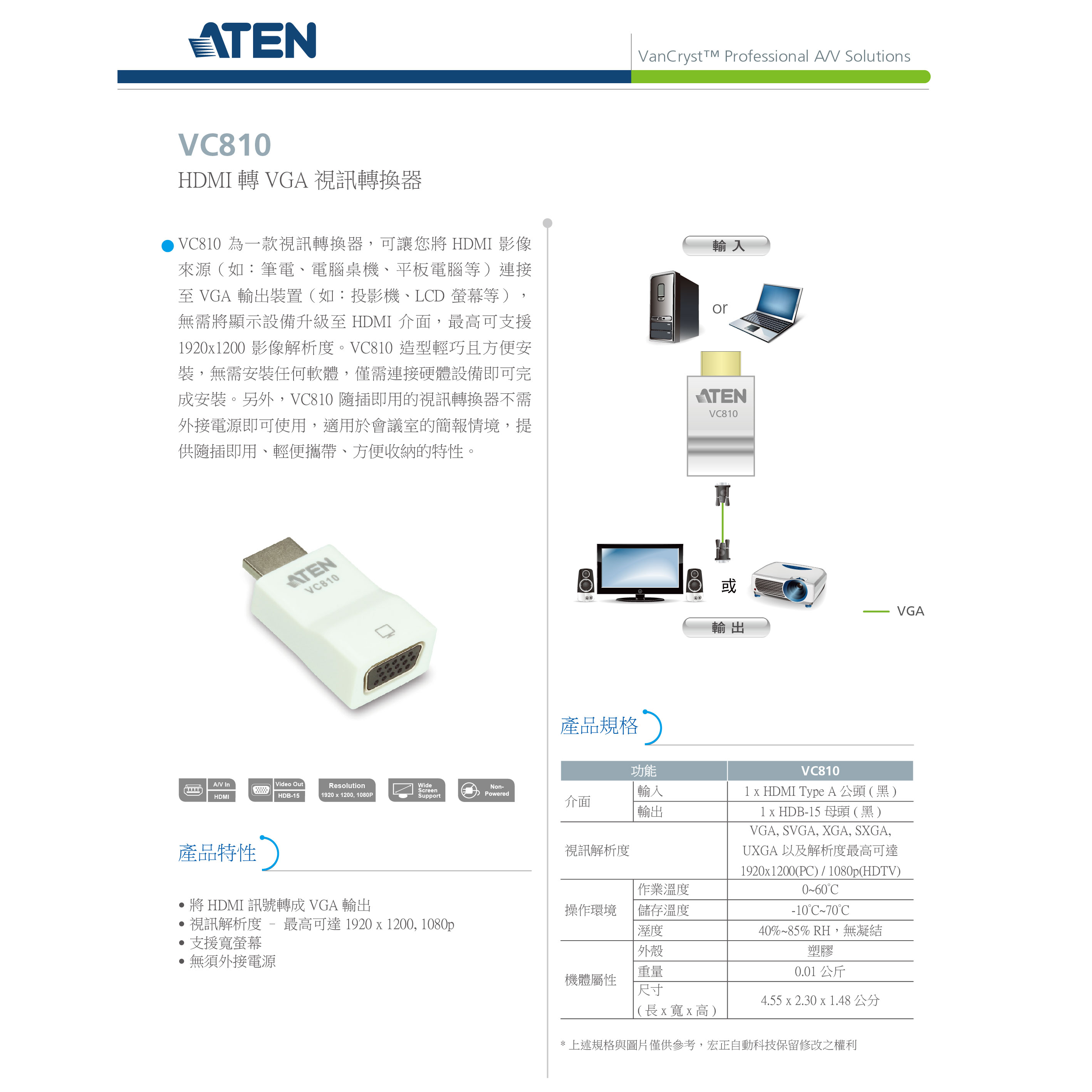 昌運監視器 ATEN 宏正 VC810 HDMI轉VGA視訊轉換器