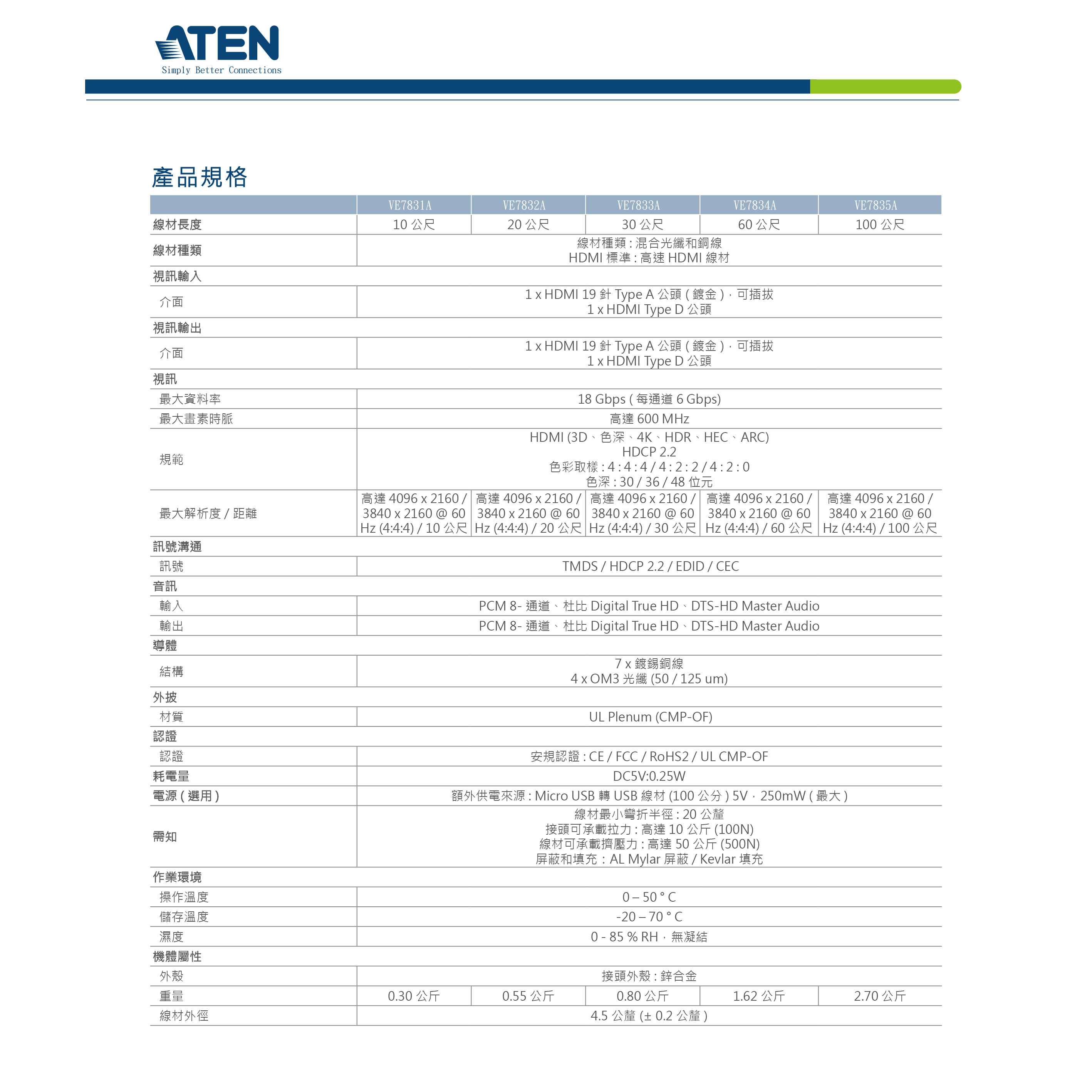 昌運監視器 ATEN 宏正 VE7831A 10公尺 True 4K HDMI 主動式光纖線材