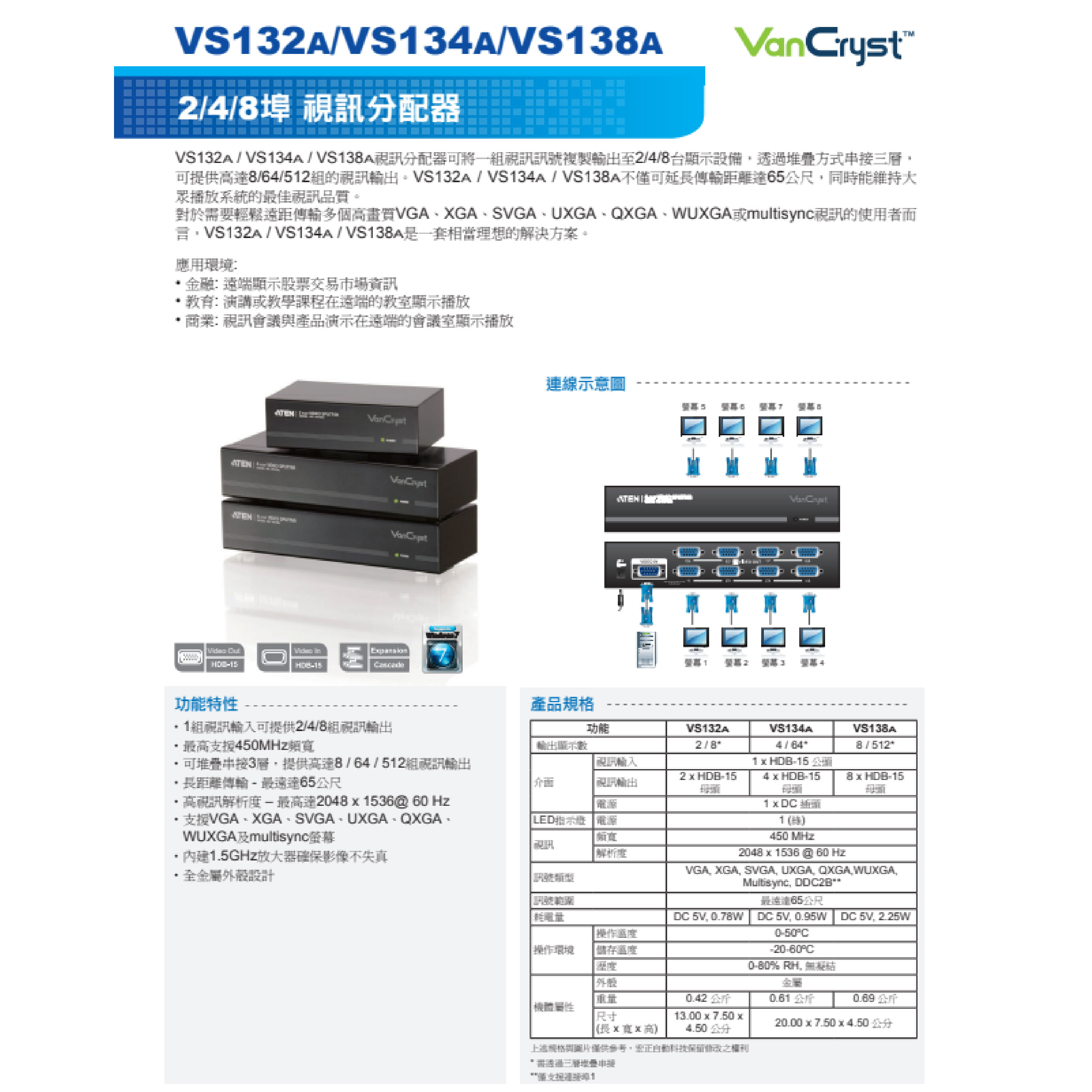 昌運監視器 ATEN 宏正 VS132A 2埠VGA視訊分配器