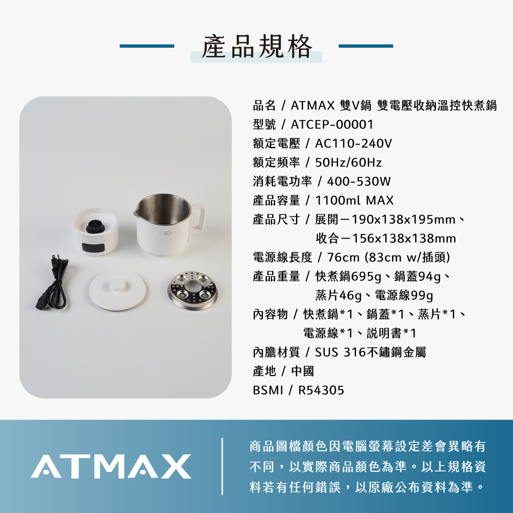 【ATMAX】VOVO 雙V鍋雙電壓收納溫控快煮鍋 ATCEP-00001 泡麵鍋 快煮壺 個人鍋
