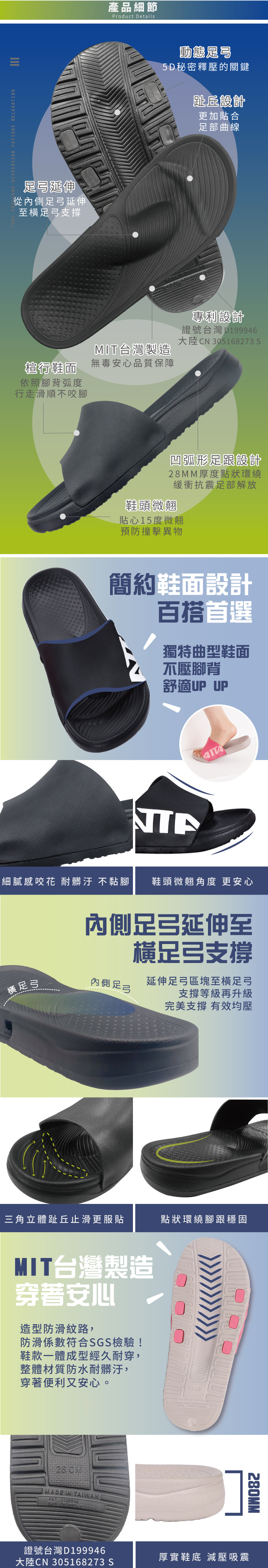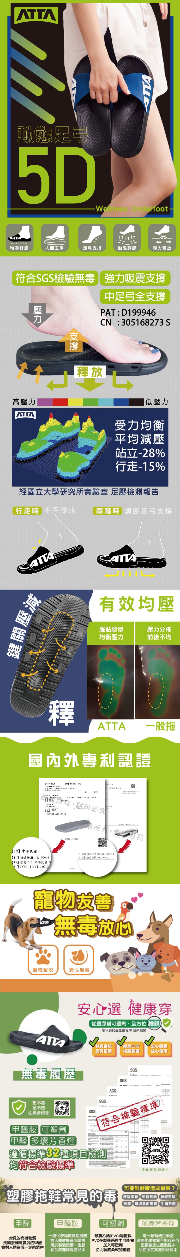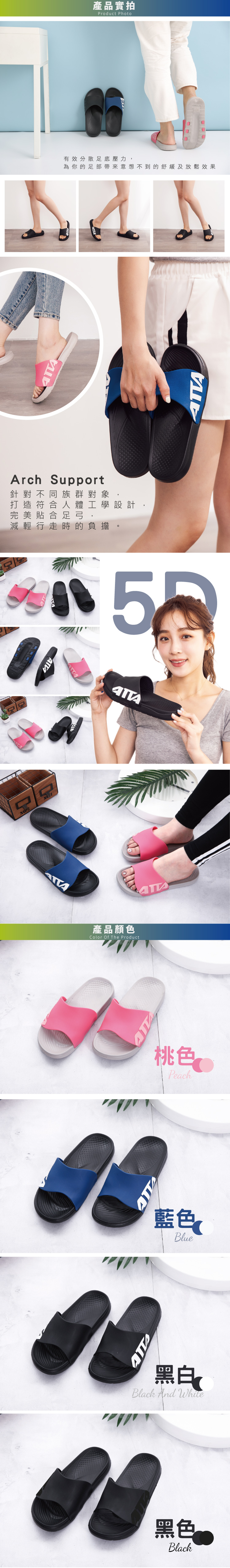 ATTA 5D動態足弓均壓拖鞋-黑白27