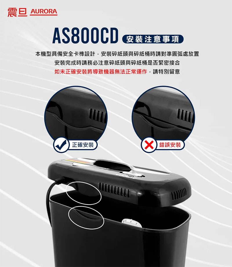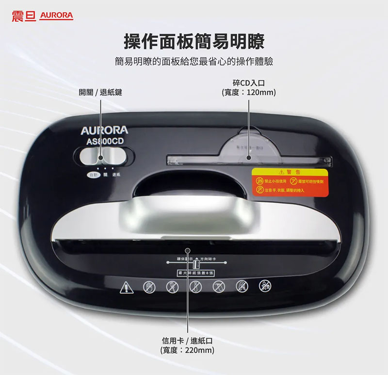 AURORA 震旦 A4 碎段式 5x47 mm 8張 15.7L 碎紙機 /台 AS800CD (可碎CD、信用卡)