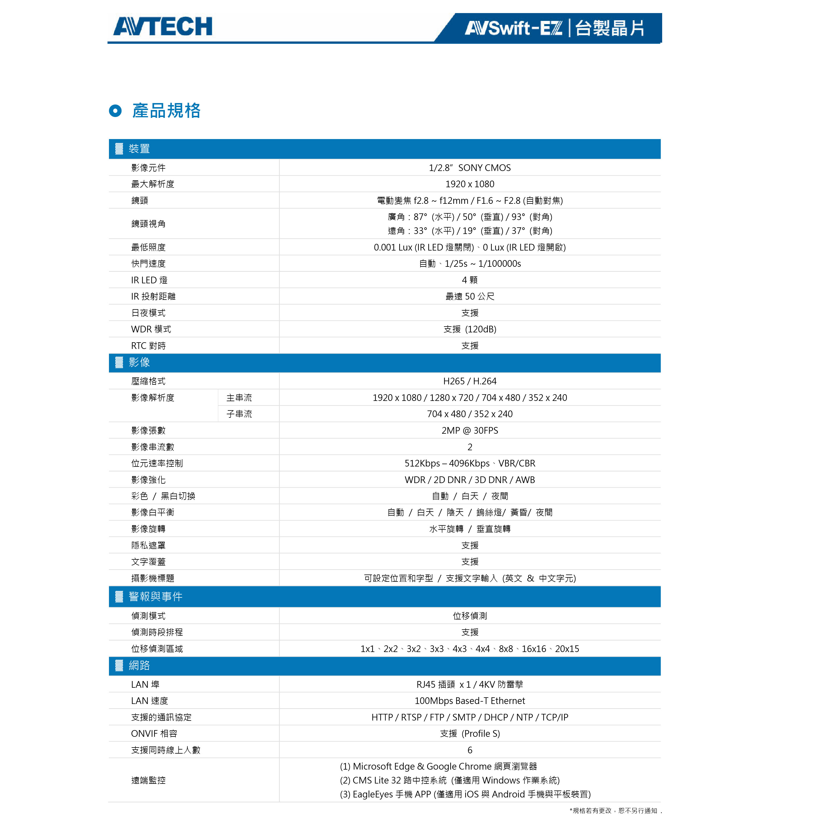 昌運監視器 AVTECH陞泰 DGM2733SVT 200萬畫素 手動變焦防護罩型紅外線網路攝影機 星光級夜視功能