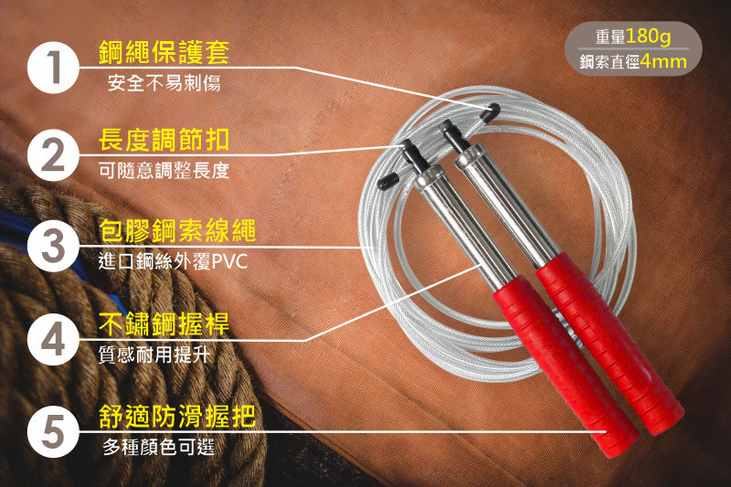 品名:BALANCE 1 crossfit高轉速鋼索跳繩 藍(不鏽鋼握把+可調整長度)主要材質:把手:不鏽鋼,外層TPR止滑,繩:鋼索,外層包覆PVC尺寸:長12X寬4.5X高18.5公分鋼索的直徑是4mm 鋼索長度是276cm重量:180公克產地:台灣基於保障消費者個人衛生用品,鑑賞期之內退換貨僅受理全新狀態之商品 (包含包膜完整未拆、無污損、包裝及配件完整)。
