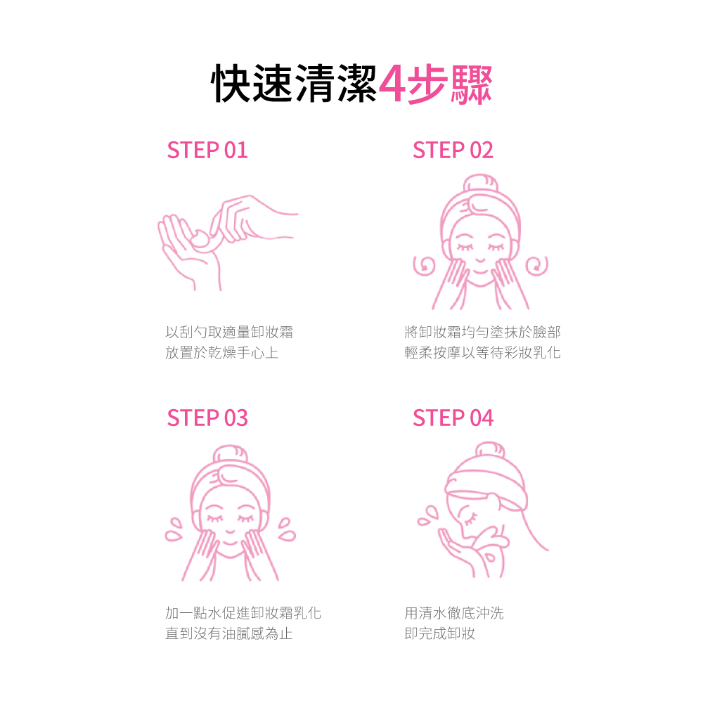 【使用方法】 1.維持手部與臉部乾爽,取適量於臉部 2.以畫圈方式按摩全臉使瞬卸凝霜充分與彩妝污垢融合 3.以紙巾擦拭或清水洗淨
