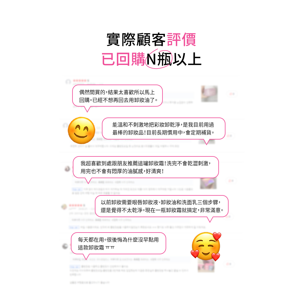 【使用方法】 1.維持手部與臉部乾爽,以挖勺取適量於臉部 2.以畫圈方式按摩全臉使瞬卸凝霜充分與彩妝污垢融合 3.以紙巾擦拭或清水洗淨