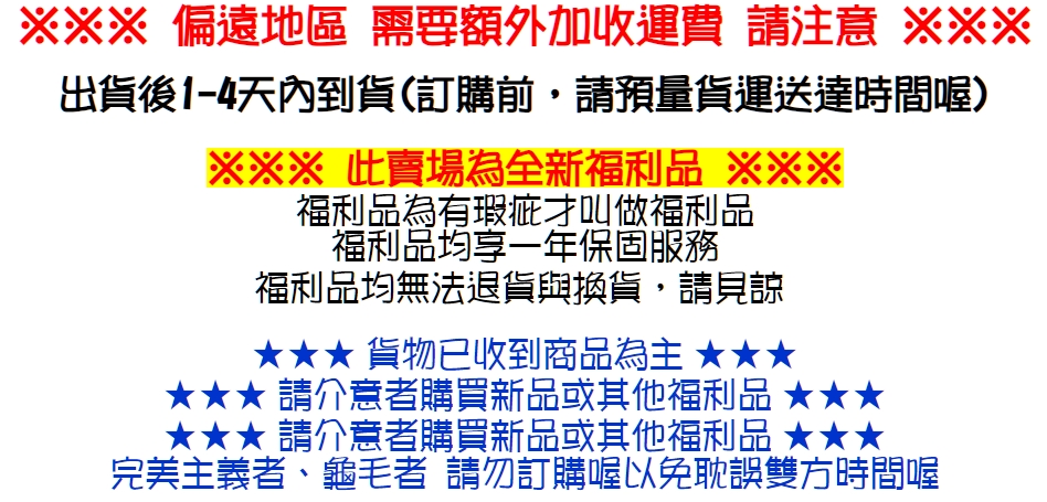 ◆保固期限:福利品贈送 "一年保固" 服務(不包括正常使用下磨損及航空公司處理不當所造成的損壞)