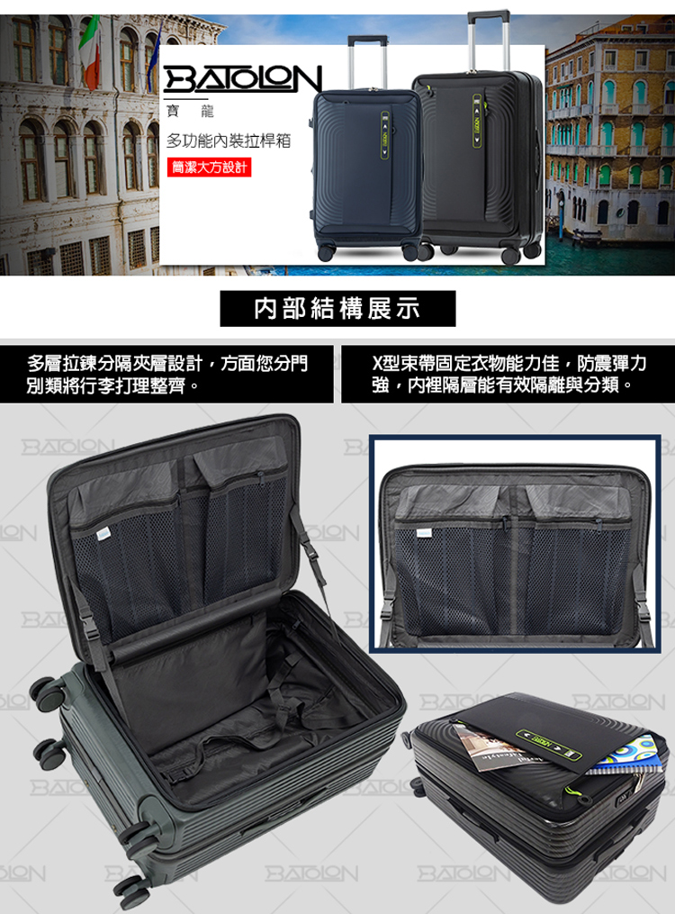 【BATOLON寶龍 】全新福利品 20/24/29吋 慕尚前開式開合加大PC防爆拉鍊硬殼箱/行李箱 (3色任選)
