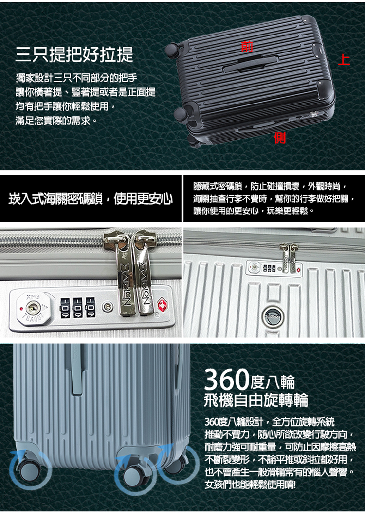 ◆尺寸(長*厚*高,含輪高):20吋/約34*29*54.5cm、24吋/約39.5*32*65cm、28吋/約45.5*37*75.5cm