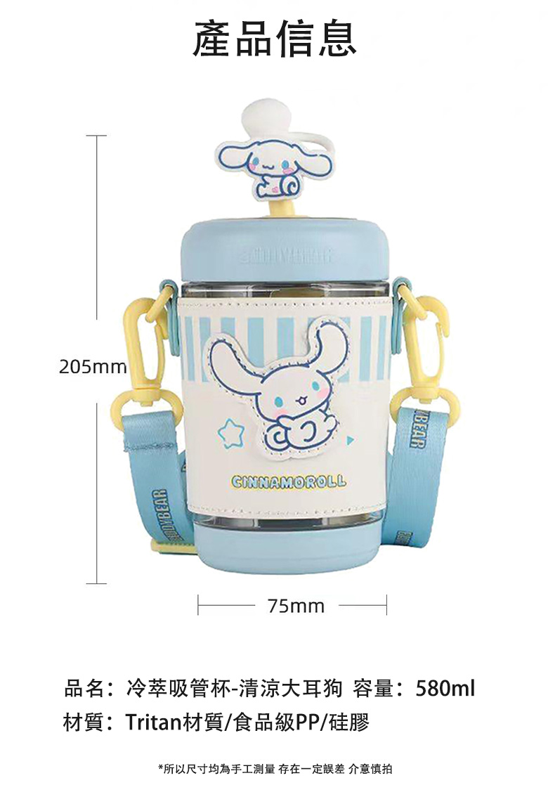 品名:【BEDDYBEAR】冷萃杯 清凉大耳狗容量:580ml尺寸:瓶底7.5CM高20.5CM材質:玻璃材質、硅膠、PP