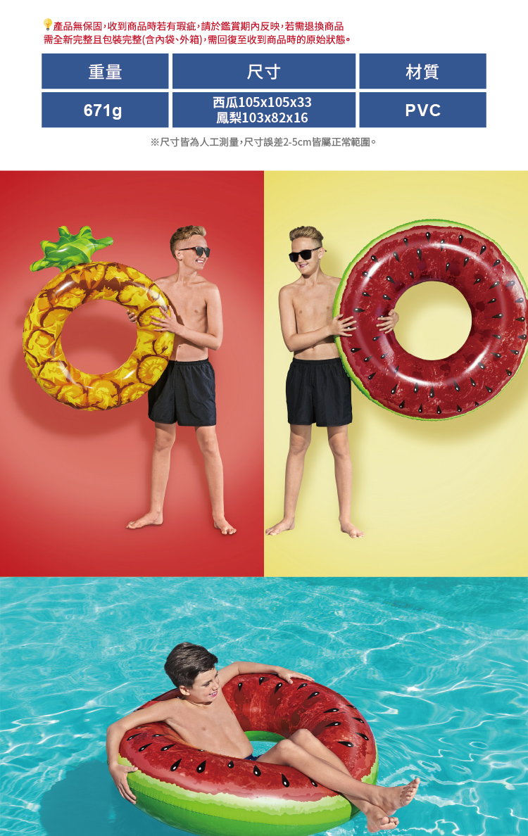 充氣尺寸:西瓜:直徑133cm;鳳梨:直徑117cm x 179cm