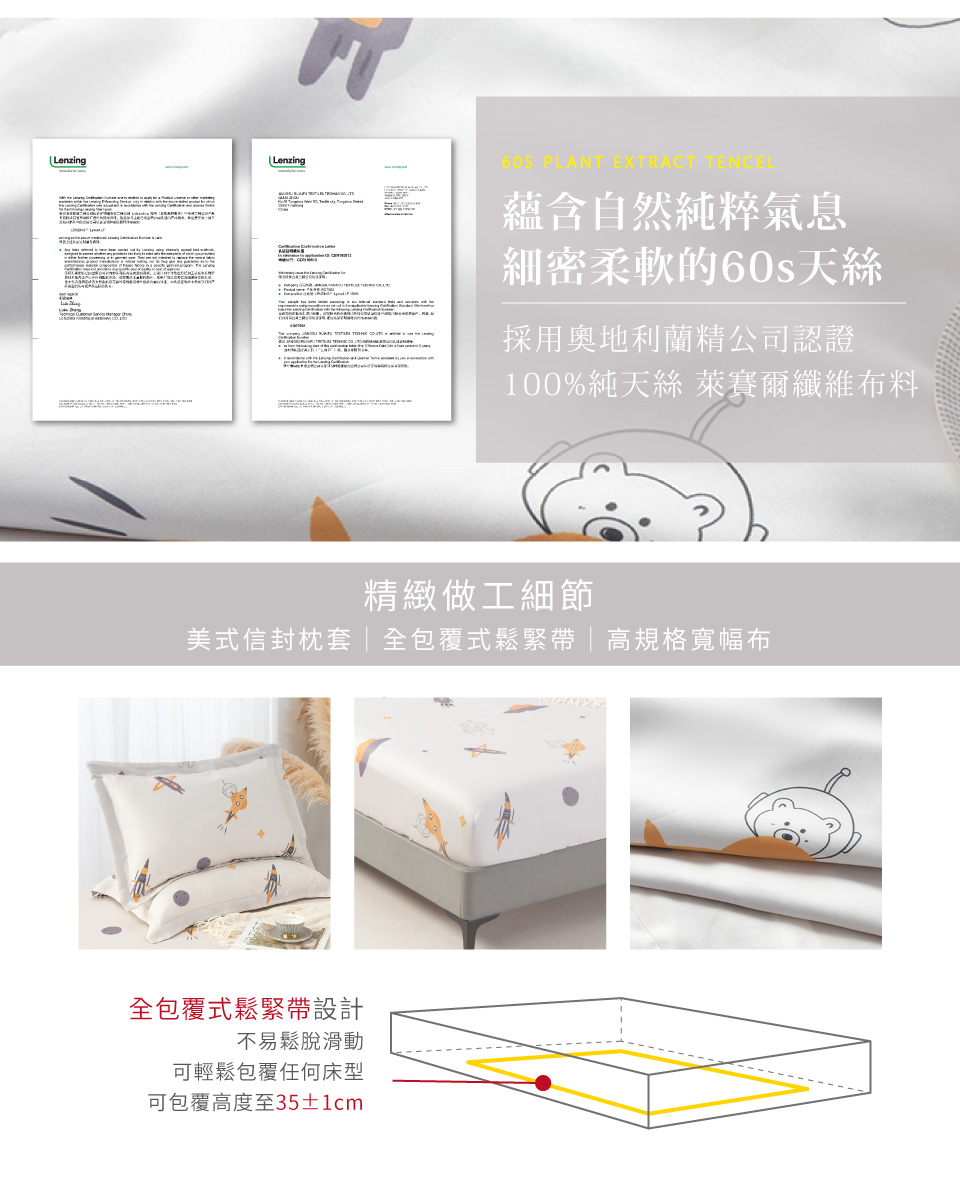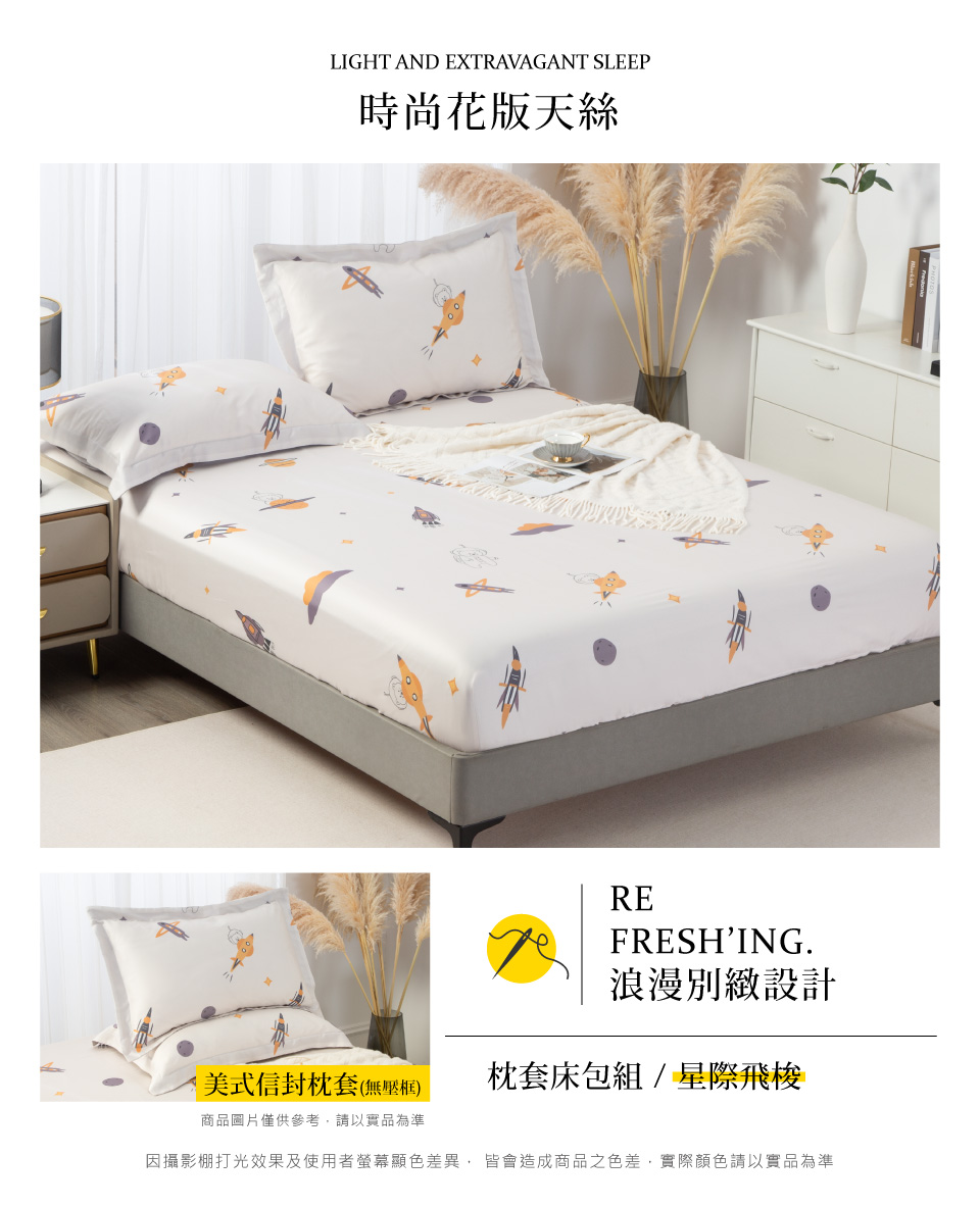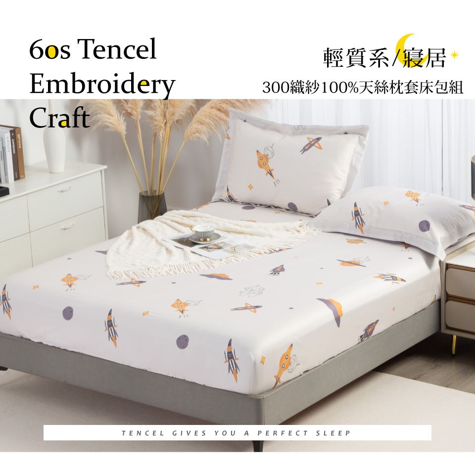 【Betrise貝翠絲】星際飛梭 | 時尚花版60支天絲枕套床包組-單人