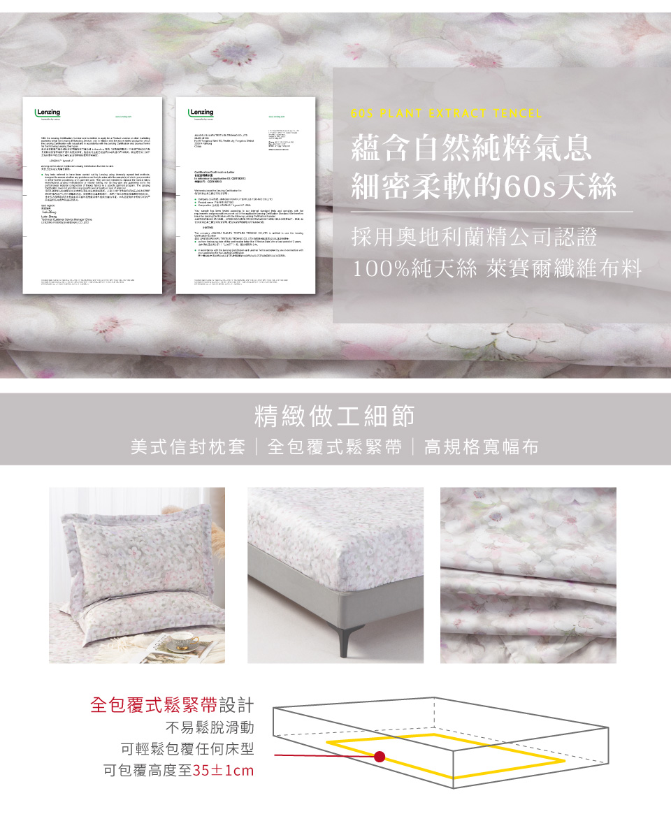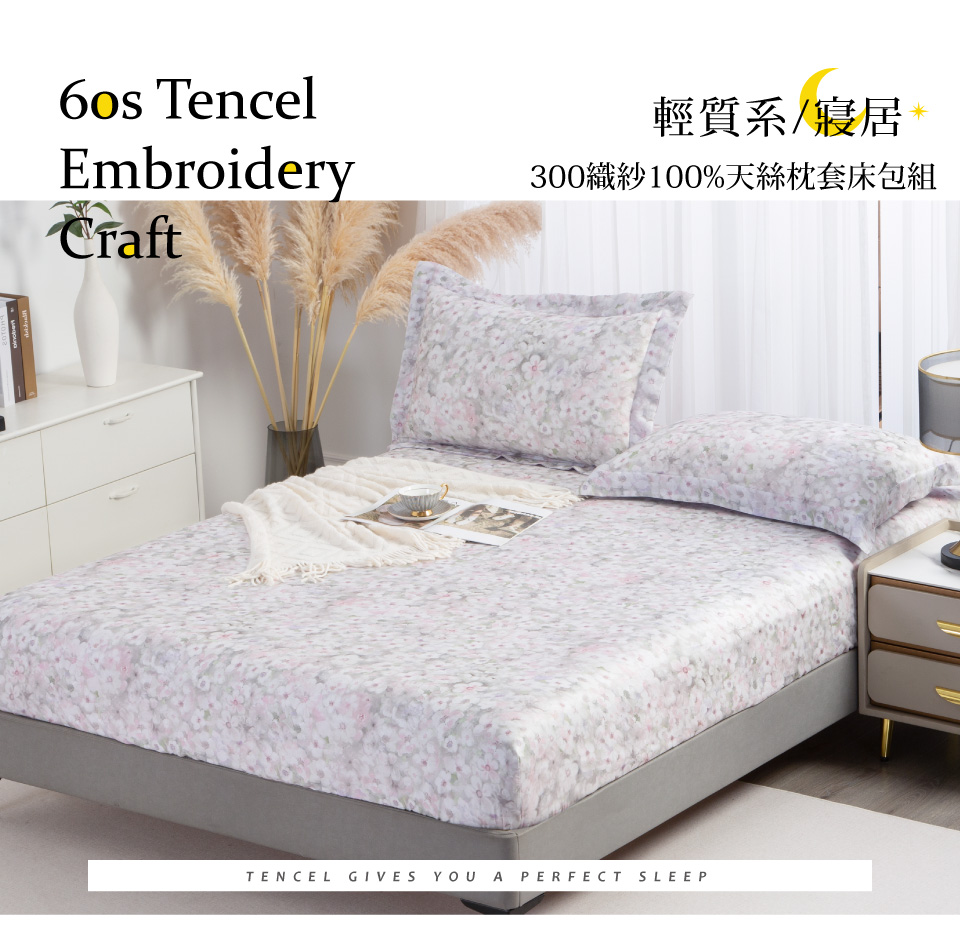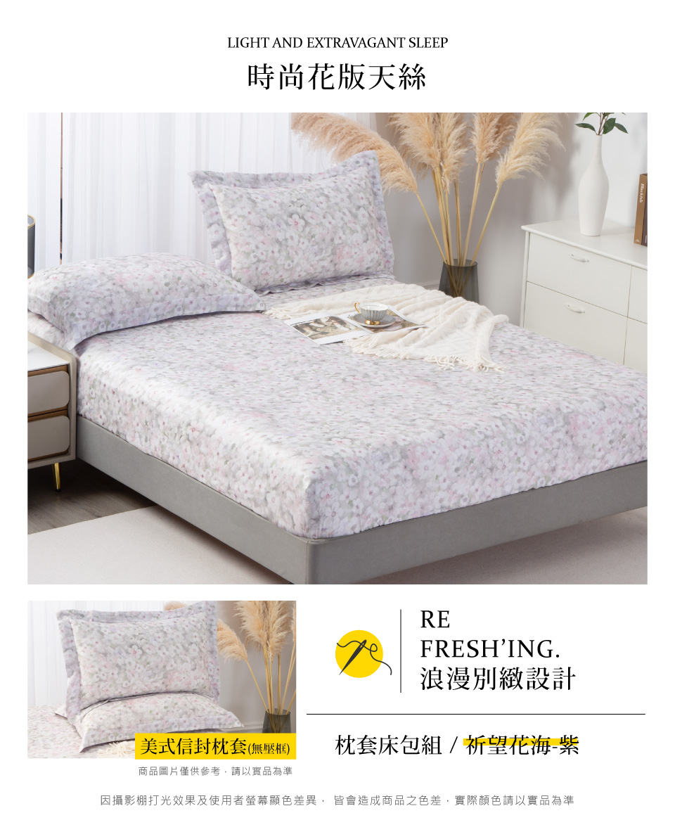 【Betrise貝翠絲】祈望花海-紫 | 時尚花版60支天絲枕套床包組-雙人