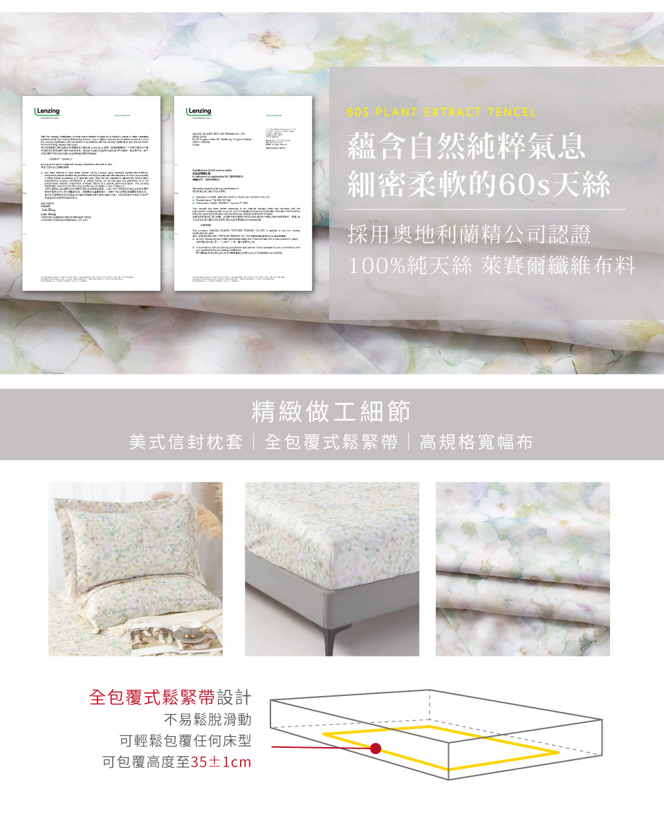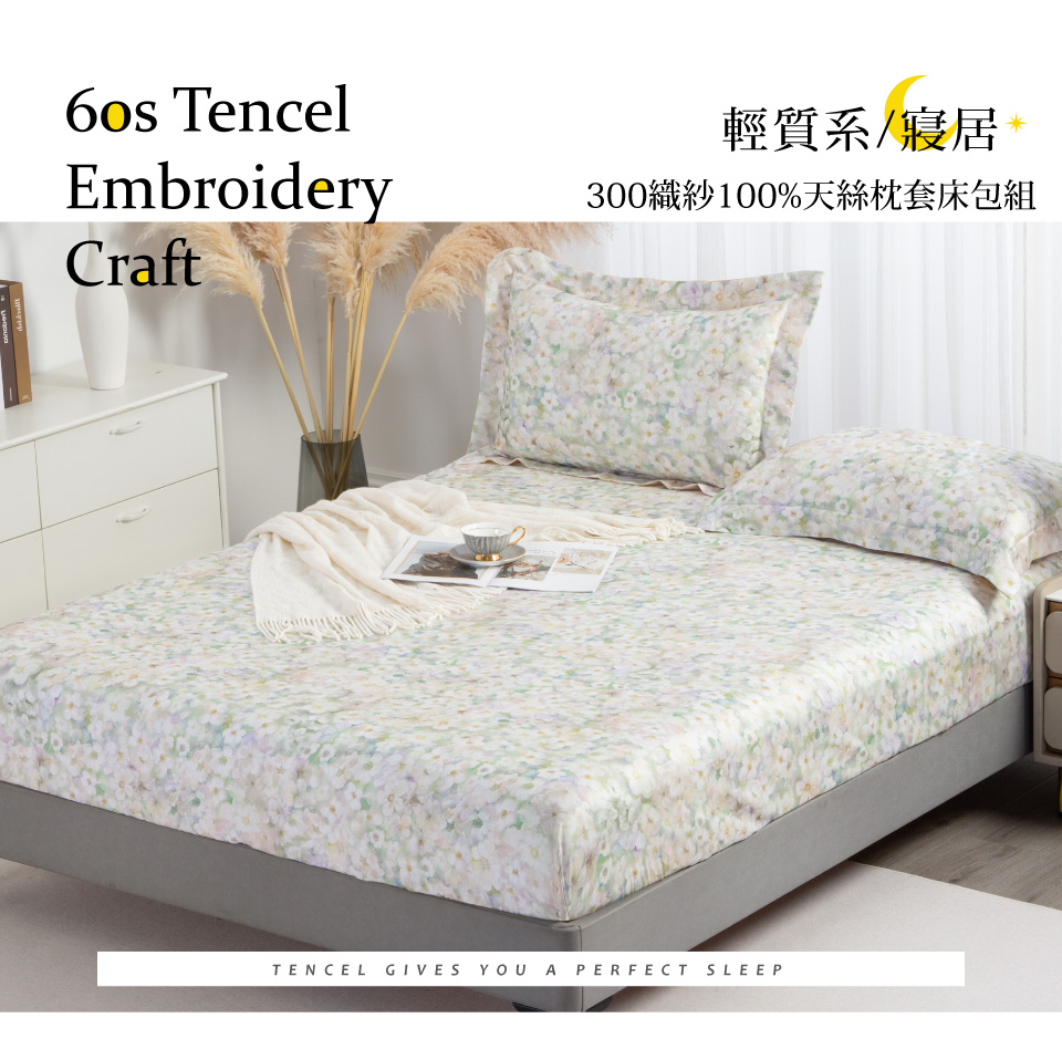 【Betrise貝翠絲】祈望花海-米 | 時尚花版60支天絲枕套床包組-雙人