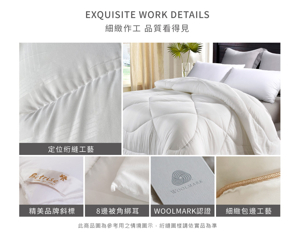 ◆產品內容/材質:◆材質:‧表布:100%聚酯纖維‧填充物:100%純羊毛◆重量:單人-總重約2.3kg±5%◆產品尺寸:單人-5x7尺(150x210cm)◆原料產地:紐西蘭◆成品加工產地:台灣◆清潔保養方式: 請勿水洗/請勿乾洗/請勿烘乾/請勿漂白/請勿熨燙/請勿重壓/可日曬1.使用時請入被套使用,並且定時弱日曬,每次30分鐘至1小時即可,可達到消毒,去溼及殺菌之效果,可恢復彈性,延長使用期限2.換季時請使用包裝袋收藏,請勿壓縮,放置於通風處即可◆注意事項:辦理商品退換貨時,商品如有贈品或配件,麻煩請一併寄回,否則視同缺件無法受理。商品經使用過或是弄髒汙損、損壞,無法接受退換貨。個人衛生用品,如經拆封使用、下水洗滌或拆解以致缺乏完整性及失去再販售價值時,視商品裝況接受退換貨!