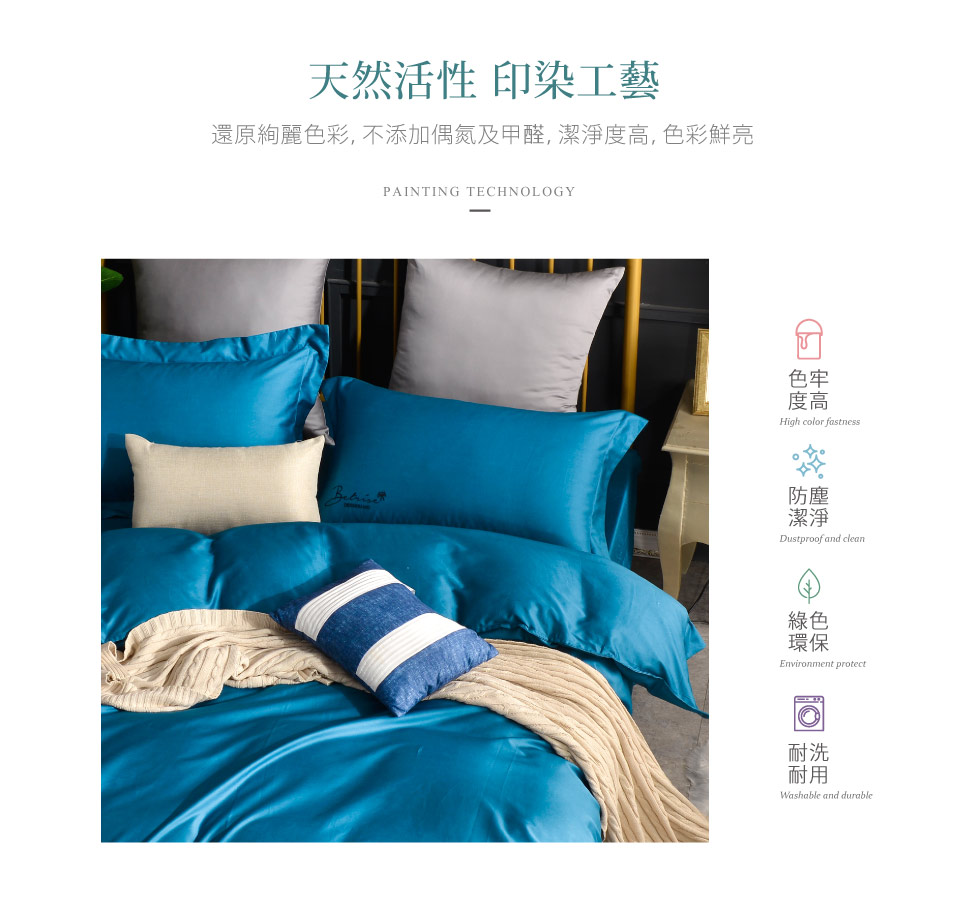 ◆清潔保養方式-可水洗/不可烘乾/不可漂白/勿使用強力漂白清潔劑/浸泡時間請勿超過20分鐘/建議可放入大型洗衣袋後再清洗(因深色布料請勿使用含漂白劑之洗劑,盡量避免浸泡,深淺色寢具請分開清洗).本產品組合為「薄床包」非「床罩」-即不包含裝飾用之床裙,被套為薄被套(可入棉被).因個人衛生問題本,產品將使用或下水清洗後恕不接受退換貨.此商品圖為參考用之情境圖示,產品內容以規格敘述內容為準.因布料裁切位置的不同,部份花版可能會與商品圖略有出入,請以收到的實品為主.請務必於鑑賞期內先確認尺寸規格無誤後再使用及下水◆ 保養方式:.注意事項一:初次使用前,可先將布翻面下水清洗一次,將表面的漿質及印染浮色洗掉,使用起來會比較柔軟,將來清洗時也不大容易褪色。.注意事項二:建議清洗時可放入大型洗衣袋後再清洗,同時,清洗時淺色的要與深色分開洗滌,避免顏色互染。.注意事項三:洗滌方式為:先將中性洗滌劑倒入洗衣機的水中,水溫不要超過30℃ ,待洗滌劑完全溶解再放入床包組,注意浸泡時間不要超過20分鐘。.注意事項四:請勿使用強力漂白清洗劑。.注意事項五:清洗後脫乾並置於室外通風處自然風乾。