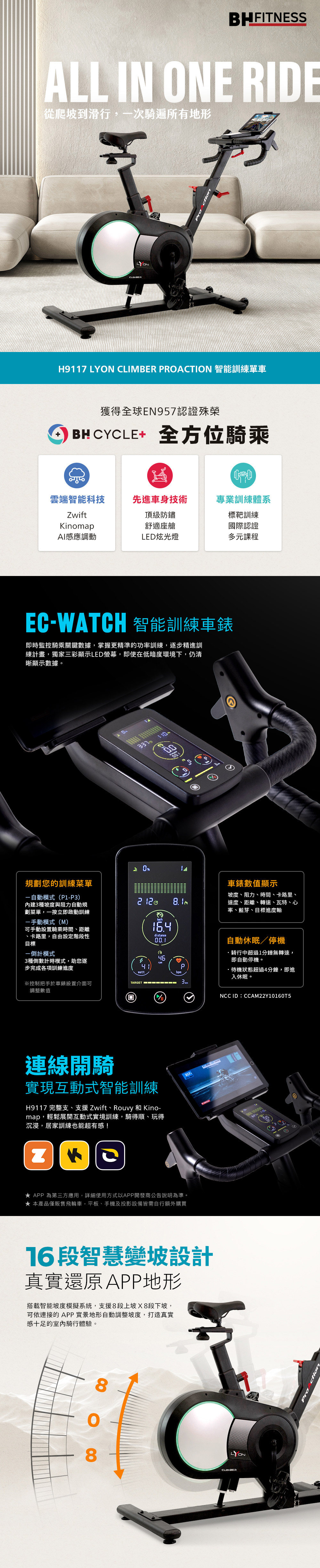 【BH歐洲百年品牌】H9117 Lyon Climber ProAction 智能訓練單車