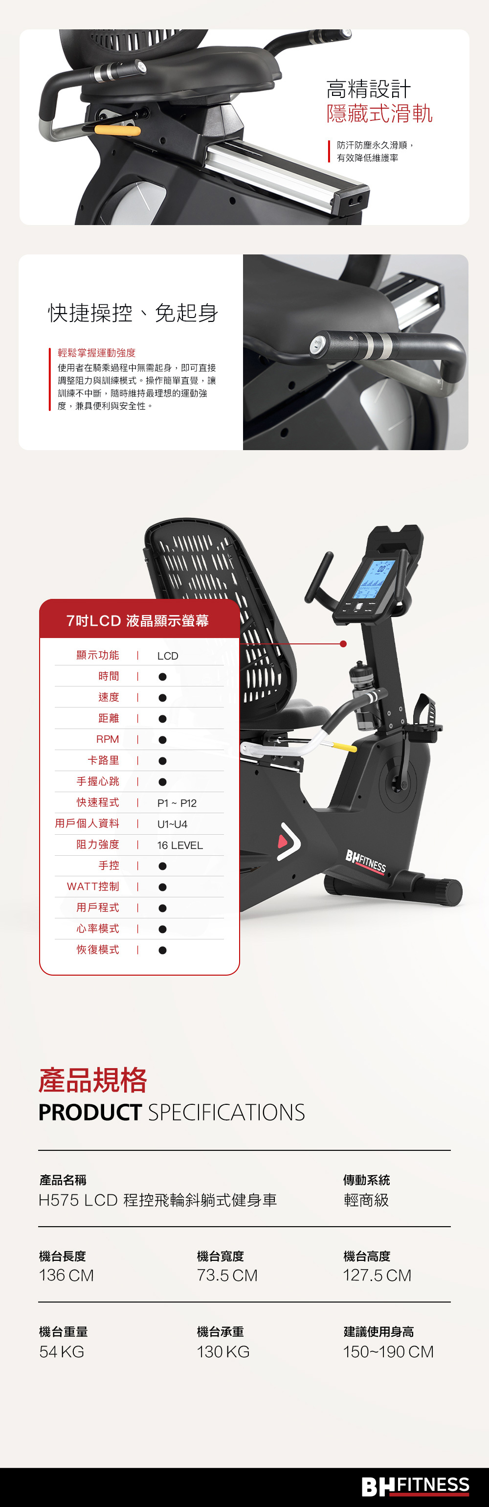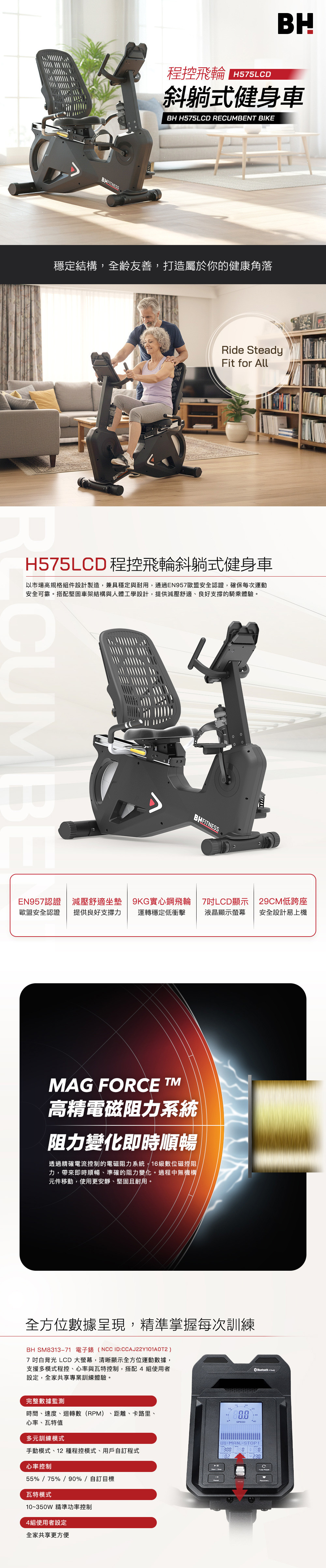 【BH歐洲百年品牌】H575LCD 程控飛輪斜躺式健身車