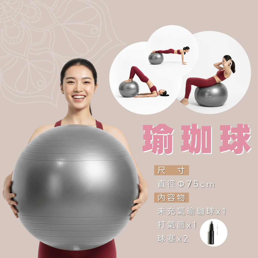 內容物:未充氣瑜珈球x1打氣筒x1球塞x2