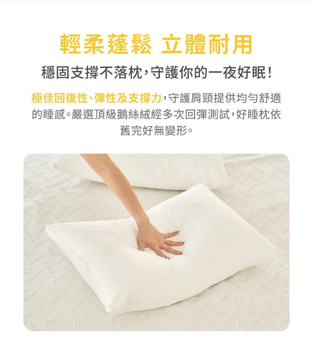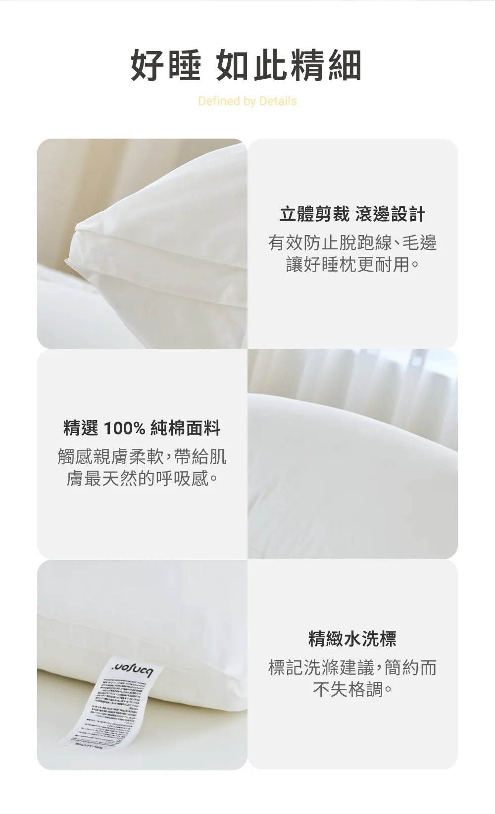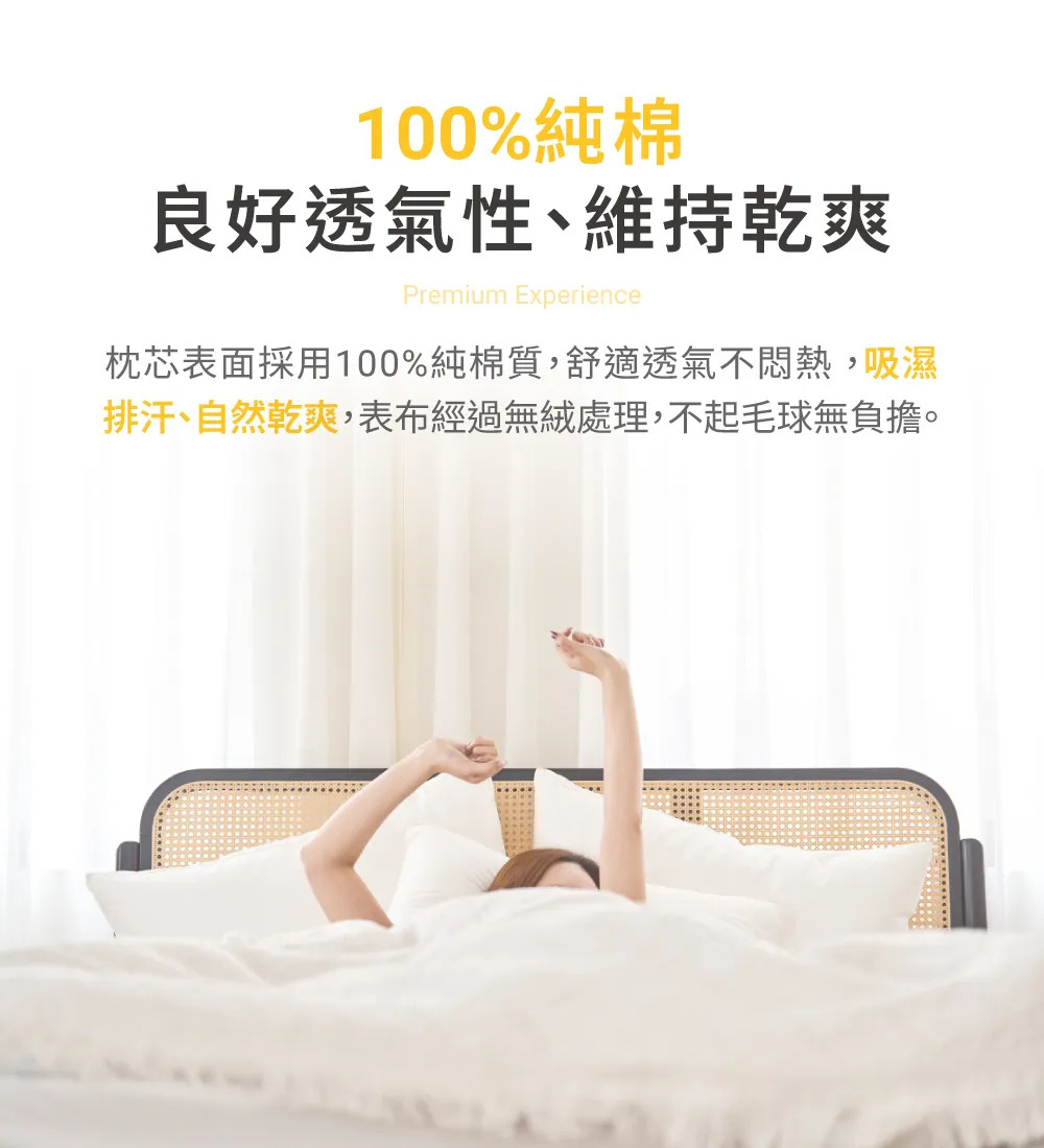 • 100% 純棉表布,親膚柔軟、吸濕排汗、透氣佳,整晚乾爽不悶熱• 日本頂級飯店指定規格,兼具支撐力與蓬鬆感• 黃金比例纖維填充,回彈力強且不易扁塌• 專業防蟎抗菌處理,表布經過衛生製程加工,有效阻絕過敏原滋生• 精緻滾邊強化工藝,簡約優雅,長期使用不變形、耐用度UP