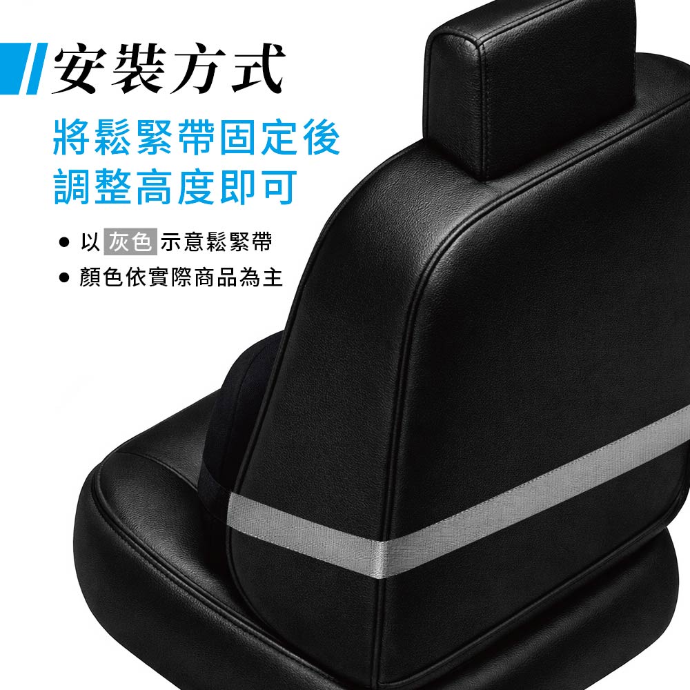 .多場景適用,一秒安裝 背面配有高彈力鬆緊帶,無論是汽車座椅、辦公椅或居家沙發均可使用。隨心調整高度,讓支撐永遠在對的位置。