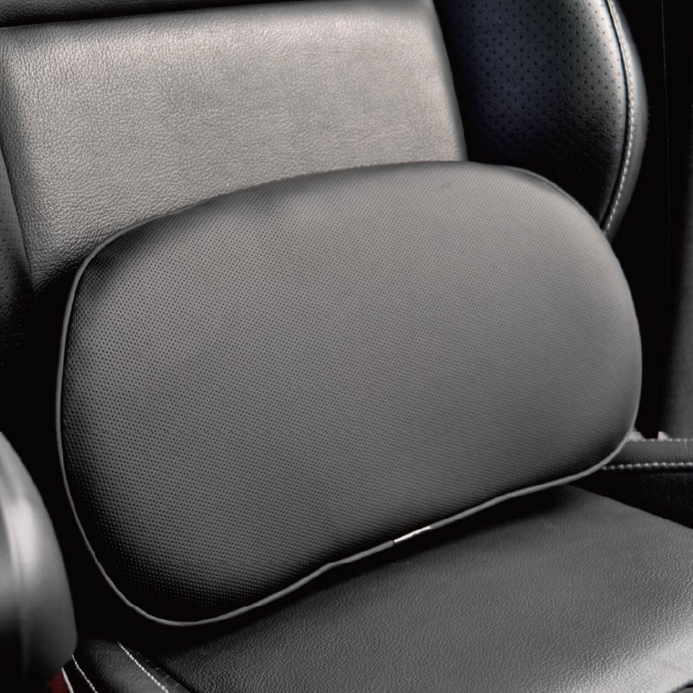 .質感皮革與卓越透氣性 外層採用 細膩合成皮革,搭配精密透氣孔設計,觸感滑順且久坐不悶熱。全黑簡約造型,能完美融入各式汽車內裝或辦公環境。