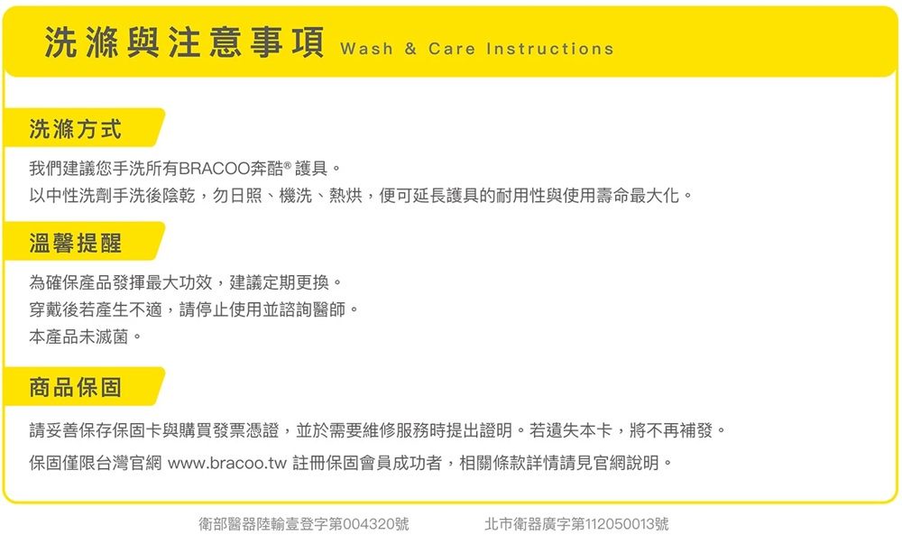 ●十字交叉包覆,設計簡潔有效加壓●日常腳踝保護,輕薄材質適合平日穿於鞋內●特殊針織技法,有助於緩解腳跟不適1、商品組合/規格:BRACOO奔酷腳踝(十字加壓套筒 S/M灰) FS602、醫療器材許可證◆核定品名: "奔酷" 肢體裝具 (未滅菌)◆核准字號:衛部醫器陸輸壹登字第004320號◆藥商名稱:康璽國際有限公司◆製造廠名稱:COMFYSTONE CO., LTD◆製造廠地址:NORTH HEAD TANGLEI RD, INDUSTRIAL DEMOSTRATION AREA, RADAR SCIENCE & TECHNOLOGY ZONE, TANGGOU TOWN, SHUYANG COUNTY, SUQIAN CITY, JIANGSU PROVINCE 223611, CHINA3、藥商許可執照◆醫材許可執照字號:中市醫材販 字第 MD6203022382 號◆藥商名稱:佑全藥品股份有限公司◆藥商地址:台中市西屯區福和里台灣大道四段925號20樓之1◆諮詢專線電話:0800-046-111 / 0800-557-6884、製造日期:詳見商品包裝標示及說明5、有效期間或保存期限:詳見商品包裝標示及說明6、消費者使用前應詳閱醫療器材說明書 ◆ 注意事項1.產品彈性壓力及功能隨穿戴時間及頻率遞減,為確保產品效用達最大發揮,建議定期更換。2.穿戴後如有不適,請即停止使用並就醫診療。3.清潔用中性洗劑沖洗後風乾,請勿日照、熱烘。4.購買前請先檢查產品有無瑕疵;個人貼身用品,弄髒、毀損或洗滌過後,恕無法更換。 消費者使用前應詳閱醫療器材說明書