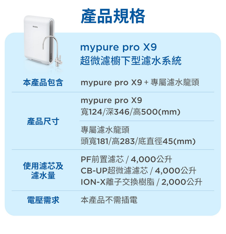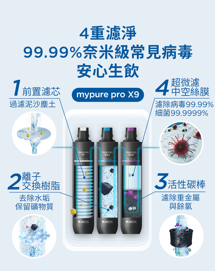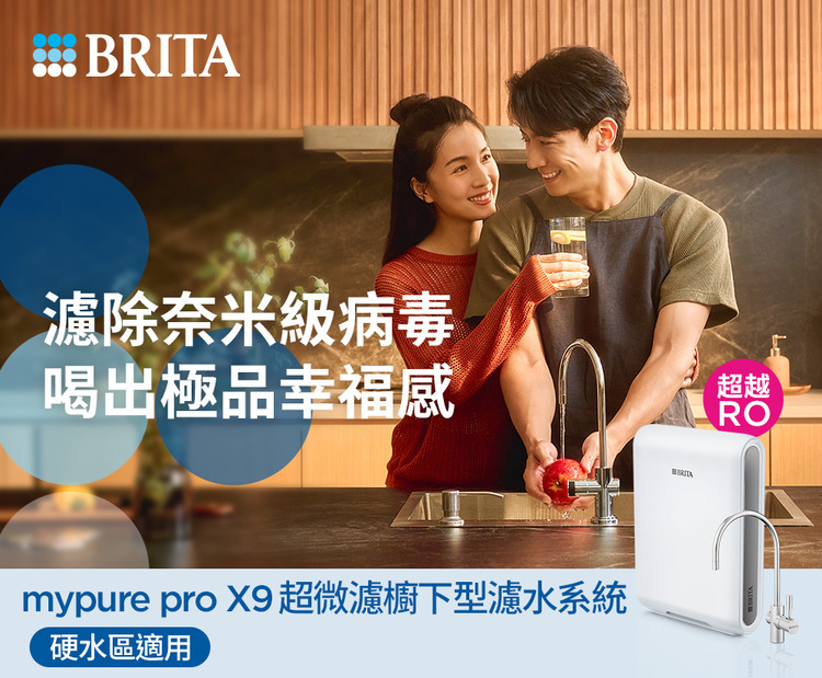 [送BRITA保冷袋三件套] BRITA超微濾四階段過濾系統X9 硬水軟化型(贈品為安裝時送達,送完為止)