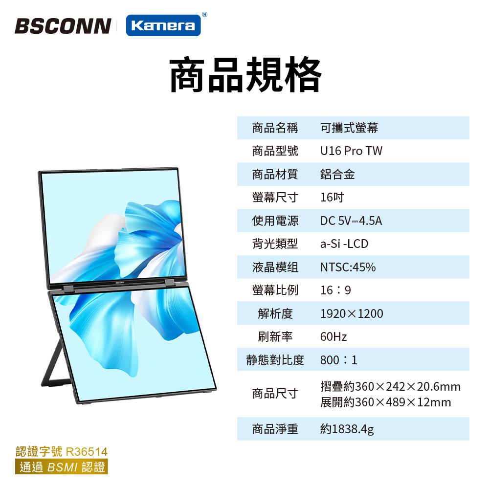 BSCONN 16吋 觸控版 可攜式雙螢幕 (U16 Pro TW)