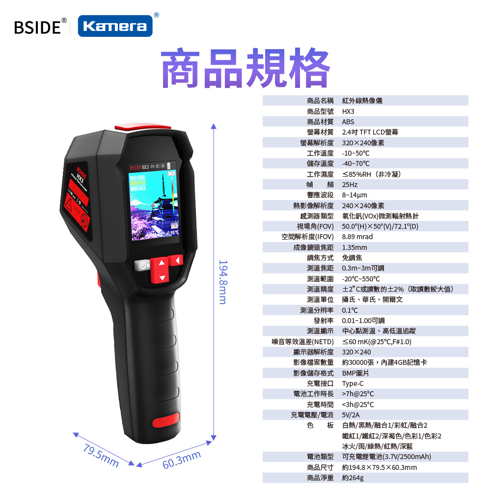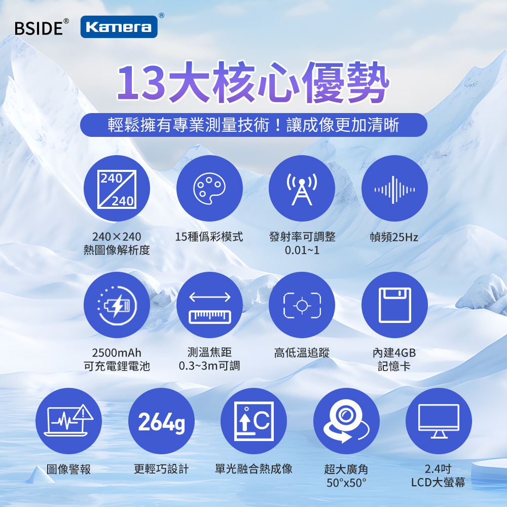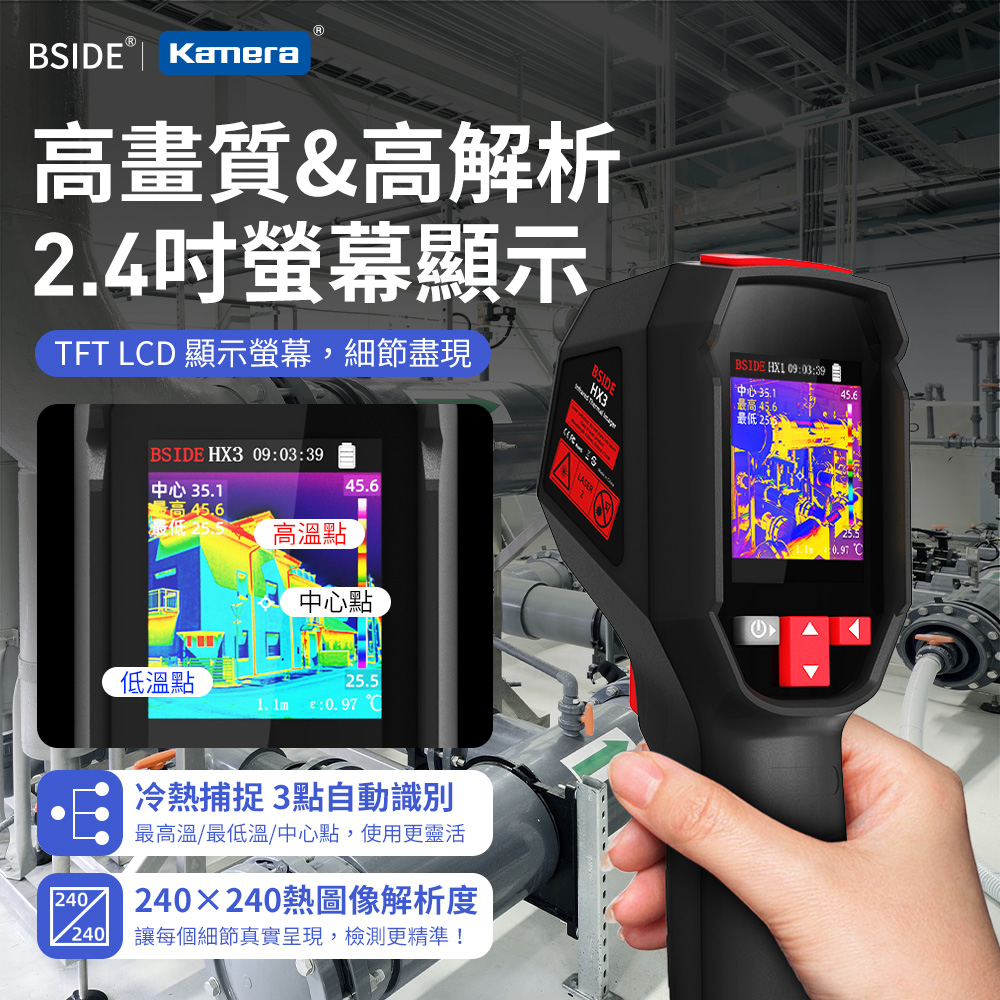 ● 熱影像解析度為240×240像素,能夠提供清晰的熱圖像,幫助準確識別熱點和冷點。