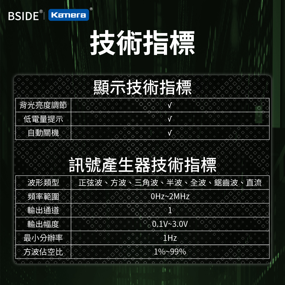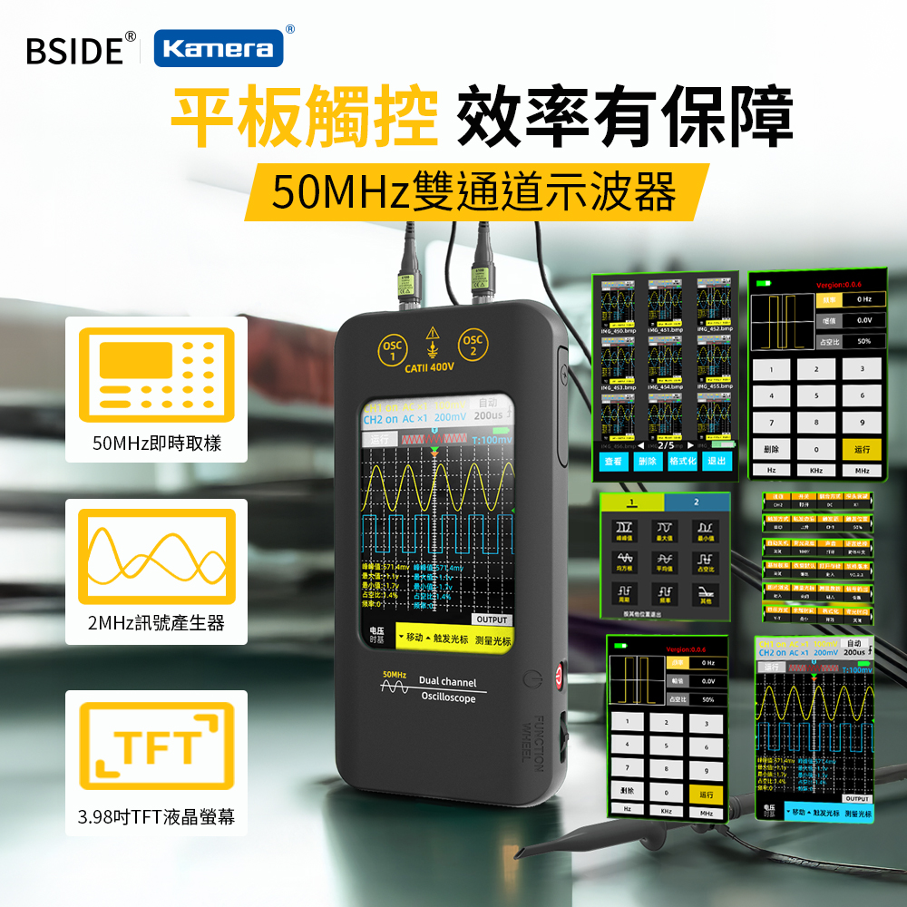 BSIDE 50MHz 雙通道示波器 TFT 帶電阻觸控螢幕 7種訊號波形 智能防燒 (O2)