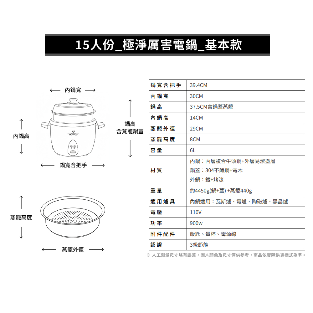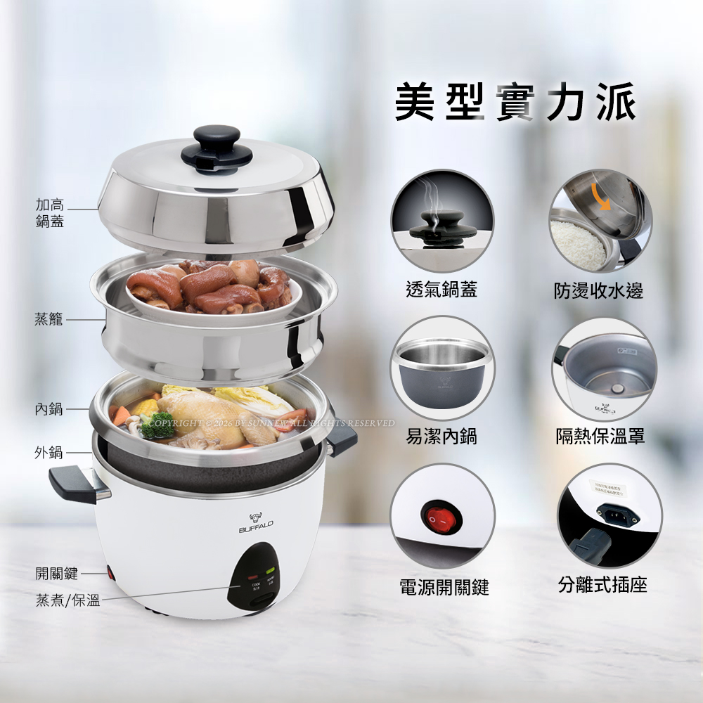【Buffalo牛頭牌】15人份_極淨厲害電鍋_基本款 (白/可分離式牛頭鋼內鍋/304不鏽鋼)
