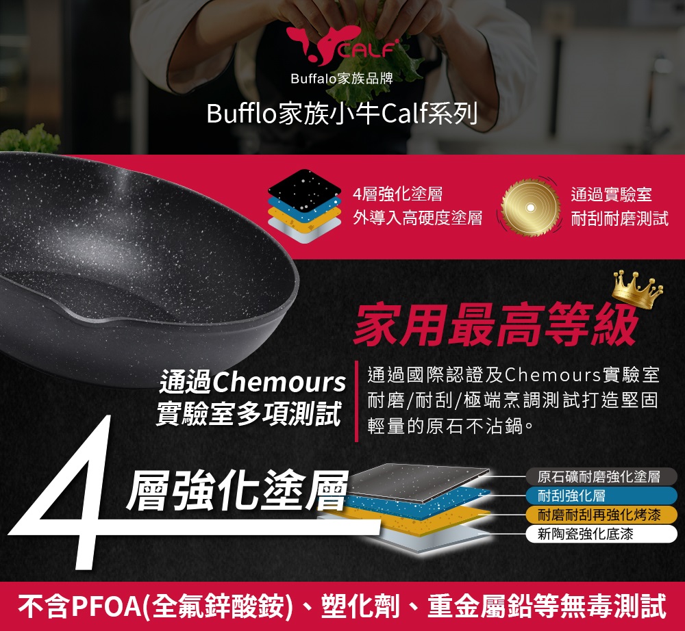 【Buffalo牛頭牌】高硬度原石不沾鍋30cm(IH/電磁爐適用 平圓底 不沾鍋 深平底鍋)