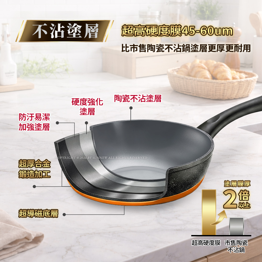 【Buffalo牛頭牌】小牛石英陶瓷不沾平圓炒鍋30cm(雙導角/不含PFOA,PFAS/塑化劑檢測通過/瓦斯爐.IH爐適用)