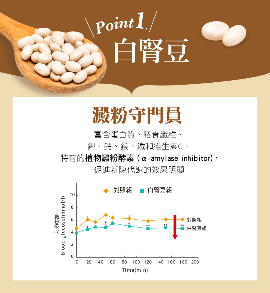 藤黃果萃取、白腎豆抽出物、栗子抽出物、綠咖啡萃取物、燕麥纖維、菸鹼酸鉻