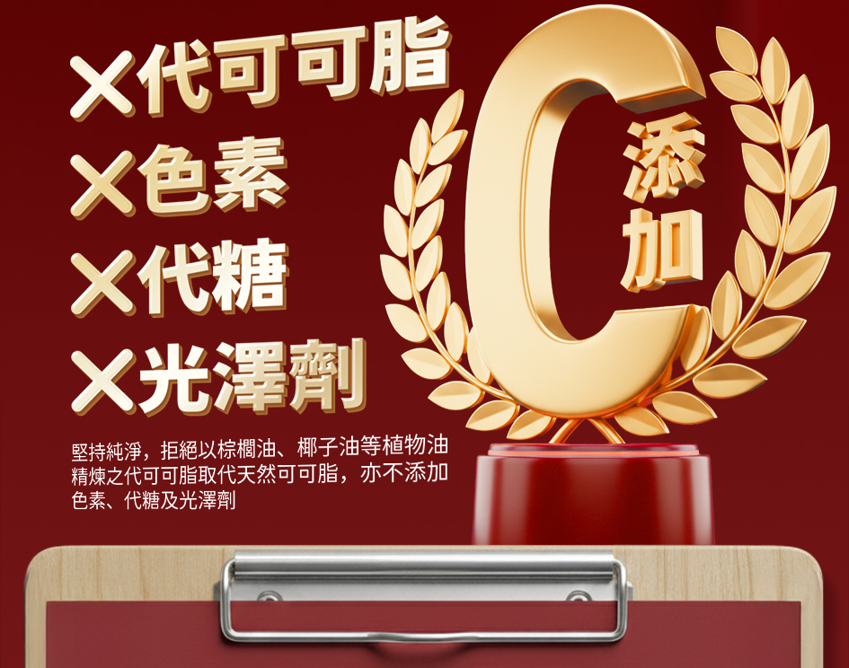 可可膏、糖、可可脂、藤黃果萃取物、瑪黛茶萃取物、摩洛血橙濃縮粉 ( 摩洛血橙濃縮粉、麥芽糊精 ) 、可可豆、大豆卵磷脂、香草香料、葵花卵磷脂、香草萃取物